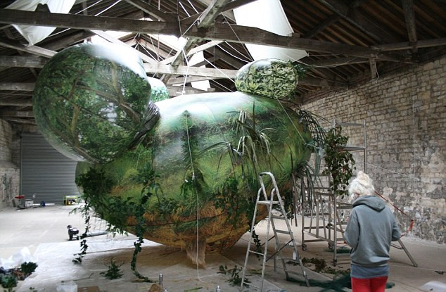 Sculptura in valoare de 12.000 de lire sterline a fost realizata de doi artisti englezi in doar sase luni si a fost ridicata in aer pentru a strange cat mai multi petrecareti la festivalul intitulat "Secret Garden Party", care are loc pe langa orasul Cambridgeshire.