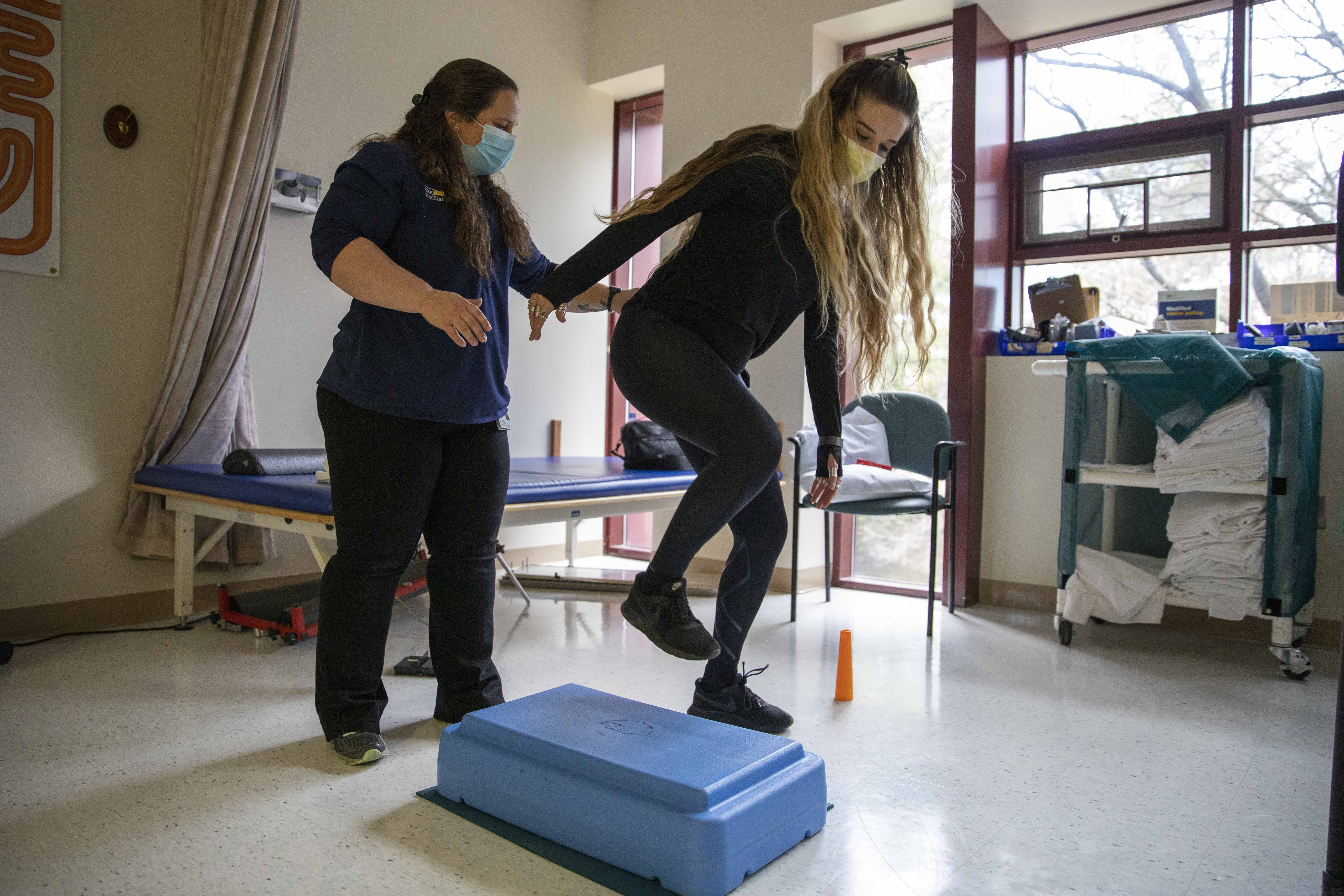 Ea încă nu mai simte nimic din partea inferioară a spatelui până în partea superioară a coapsei, și nu-și poate controla picioarele.