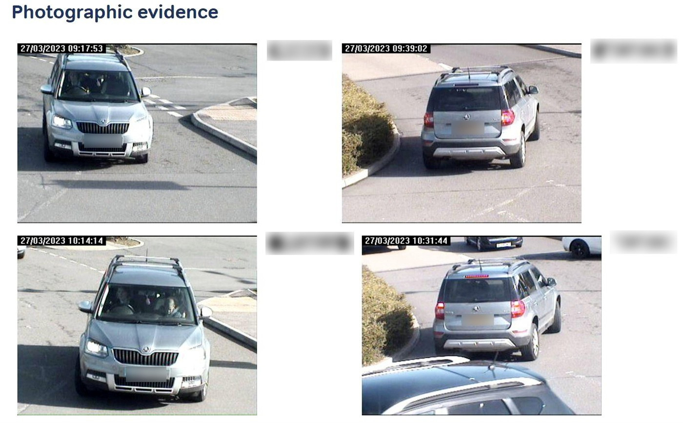 Ea este acuzată că ar fi încălcat regula „fără revenire în patru ore” după ce s-a întors de două ori în parcarea unui supermarket în aceeași zi. Conform imaginilor surprinse de camerele de supraveghere, mașina ei a intrat în parcare pe 27 martie 2023, la ora 9:17, și a ieșit la 9:39. Aceeași mașină a revenit la 10:14 și a părăsit parcarea 17 minute mai târziu.