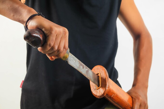 Potrivit acesteia, bărbatul a plecat, dar s-a întors la scurt timp după aceea, vizibil furios și înarmat cu o sabie mare.