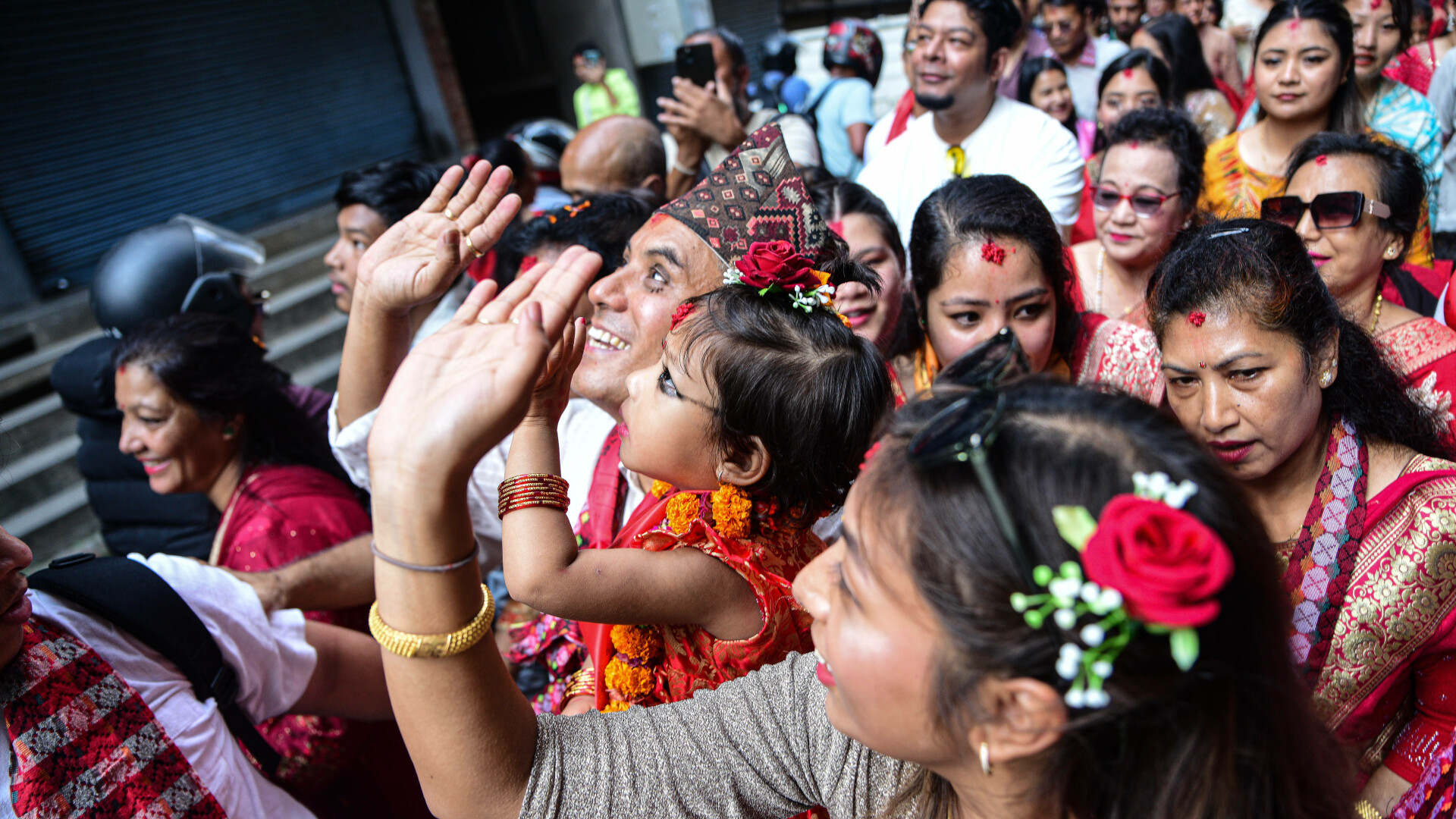 Marți a fost a opta zi a lui Dashain, o celebrare de 15 zile a victoriei binelui asupra răului. Birourile și școlile au fost închise, iar oamenii sărbătoreau alături de familiile lor. Familia, prietenii și devotații au purtat noua Kumari pe străzile Kathmandu-ului înainte de a intra în palatul-templu care îi va fi casă pentru mai mulți ani.