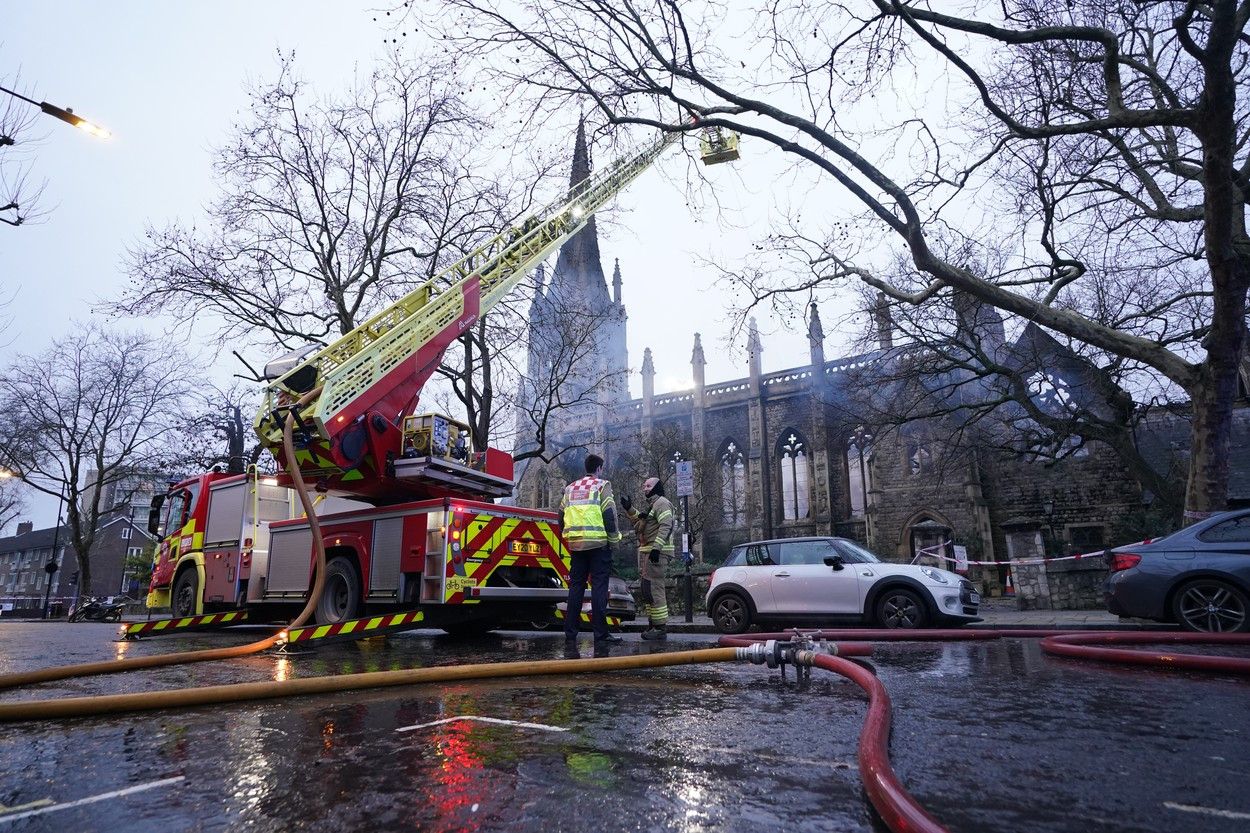 Aproximativ 80 de pompieri au mers la catedrala St. Mark pentru a stinge flăcările.