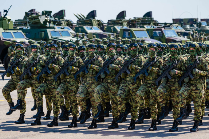 La ceremonie au fost prezenţi, de asemenea, preşedintele sârb Aleksandar Vucic şi şeful de Stat Major al armatei sârbe, generalul Milan Mojsilovic.