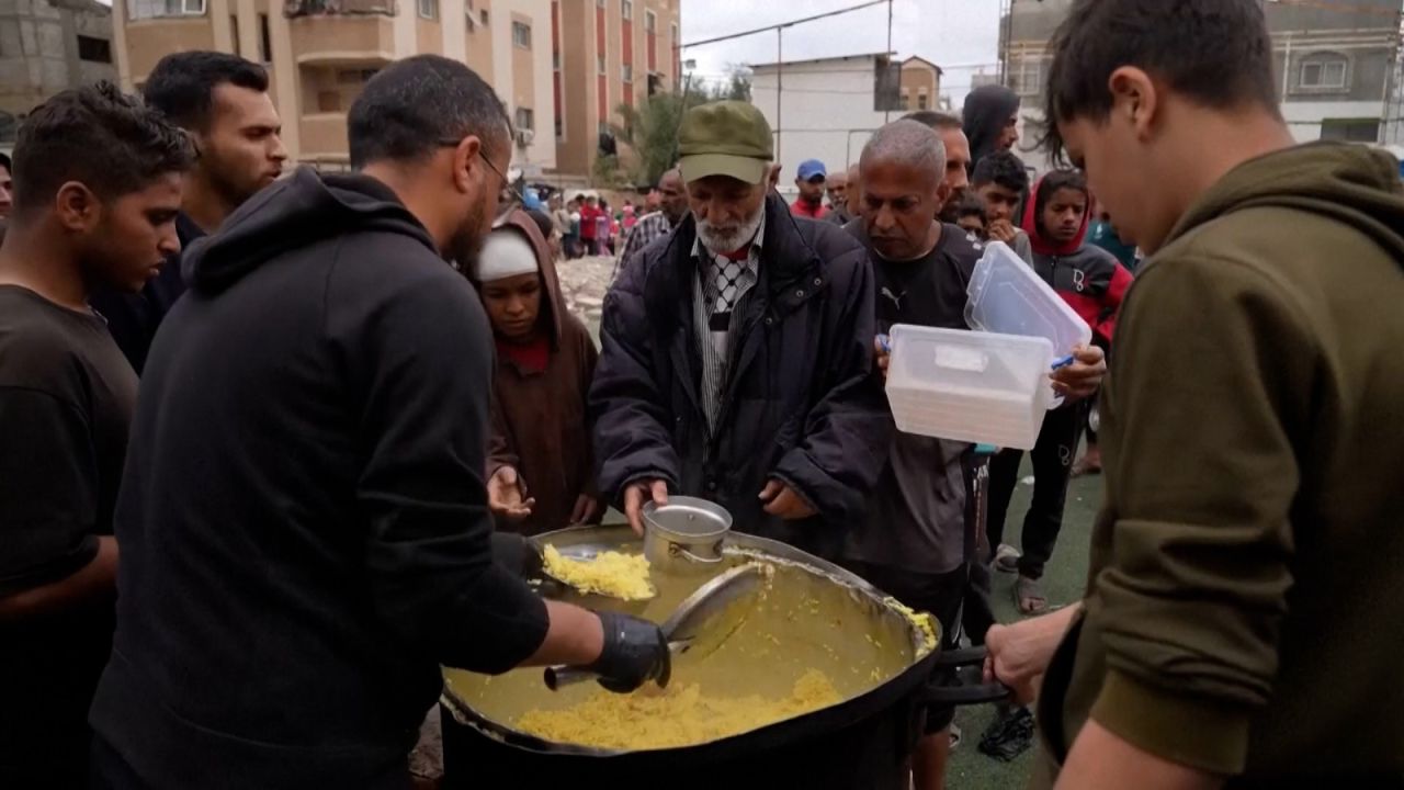 Palestinienii așteaptă ore întregi pentru o porție de orez gratis, în Fâșia Gaza. „Nu există mâncare, nici apă de băut”