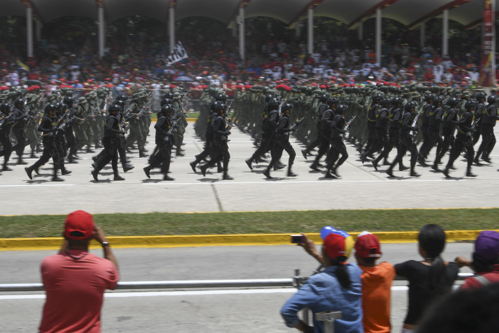 Parada de pe 5 iulie a marcat 208 ani de la câștigarea independenței față de Spania. Maduro a aplaudat și a gesticulate cu pumnul către soldații care mărșăluiau în fața sa, scrie Daily Mail.