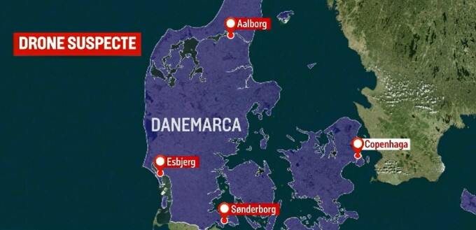 Dronele au fost reperate în apropierea aeroporturilor din Aalborg (nord), Esbjerg (vest) şi Sonderborg (sud) şi a bazei aeriene din Skrydstrup (sud), înainte de a părăsi zona.