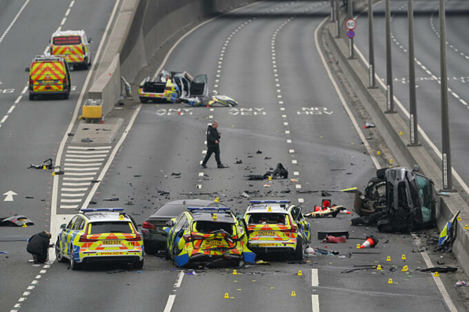 Un accident rutier grav a avut loc, miercuri, pe o autostradă din Marea Britanie. Șapte ofițeri de poliție au fost transportați la spital după o urmărire în trafic.