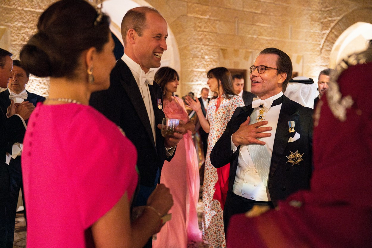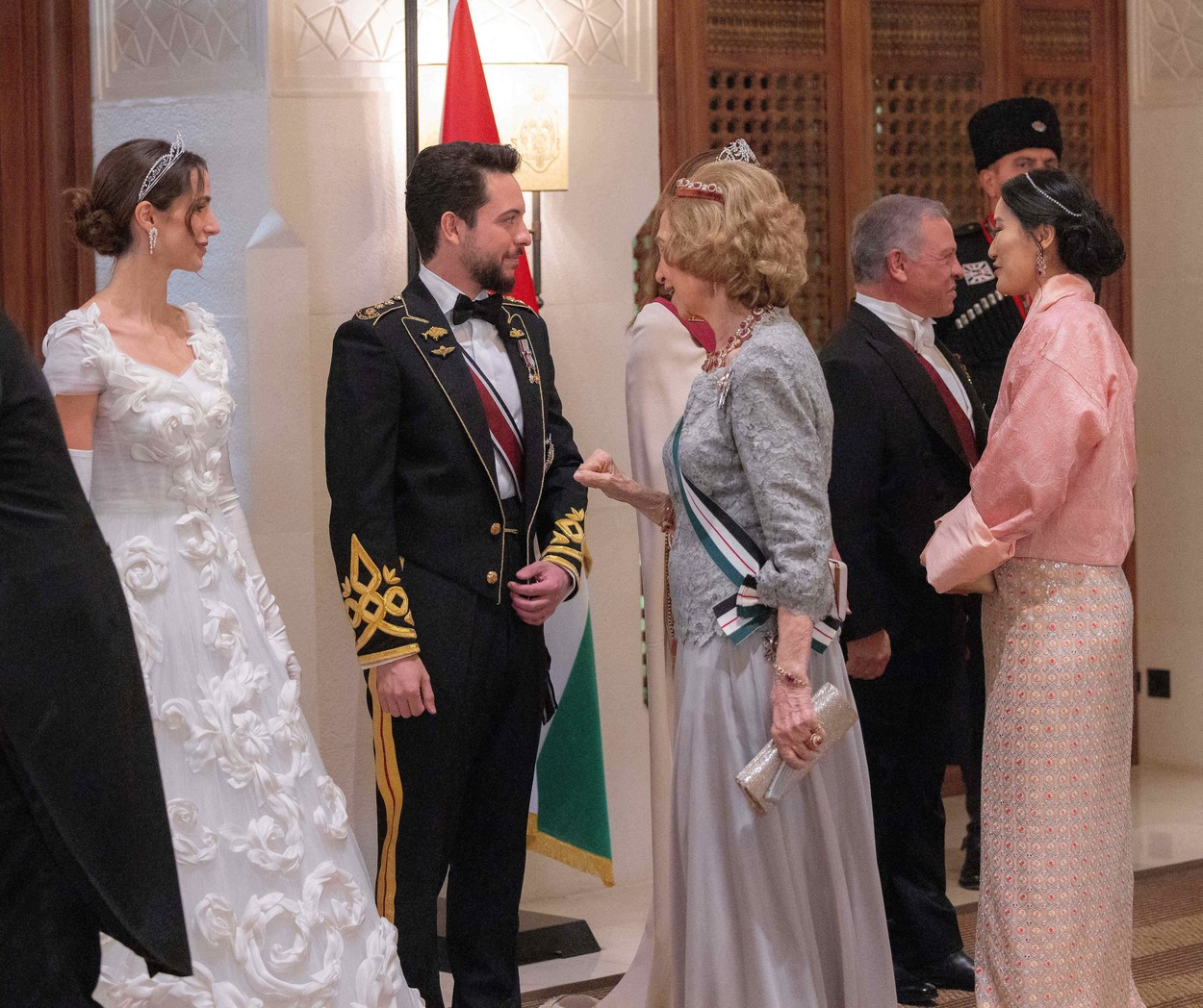 Mama mirelui, Regina Rania, răpitor de frumoasă și la 52 de ani, Kate Middleton, prințesa moștenitoare a tronului belgian, Elisabet, sau regina Maxima a Olandei au adus stălucire banchetului de la Palatul Al Husseiniya. Prima doamnă a americii Jill Biden, a fost însoțită de fiica ei, Ashley Biden.