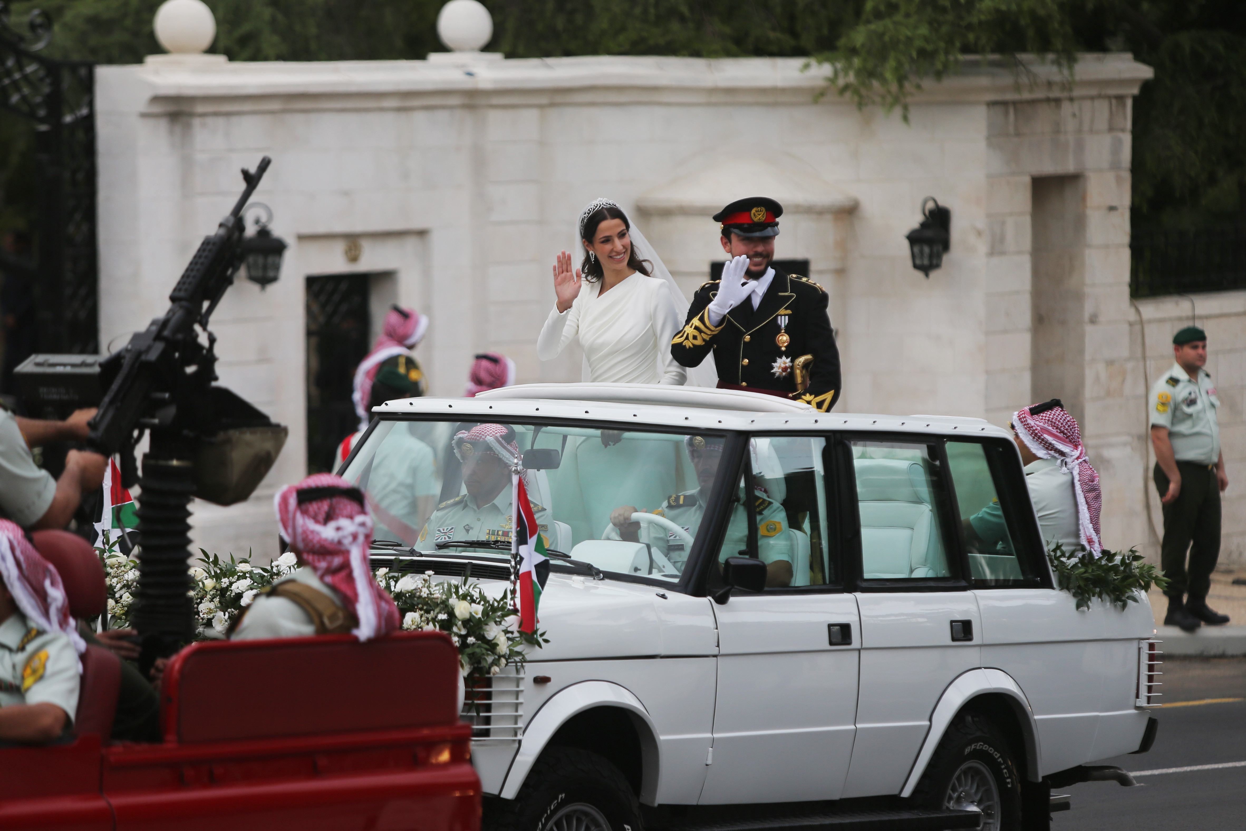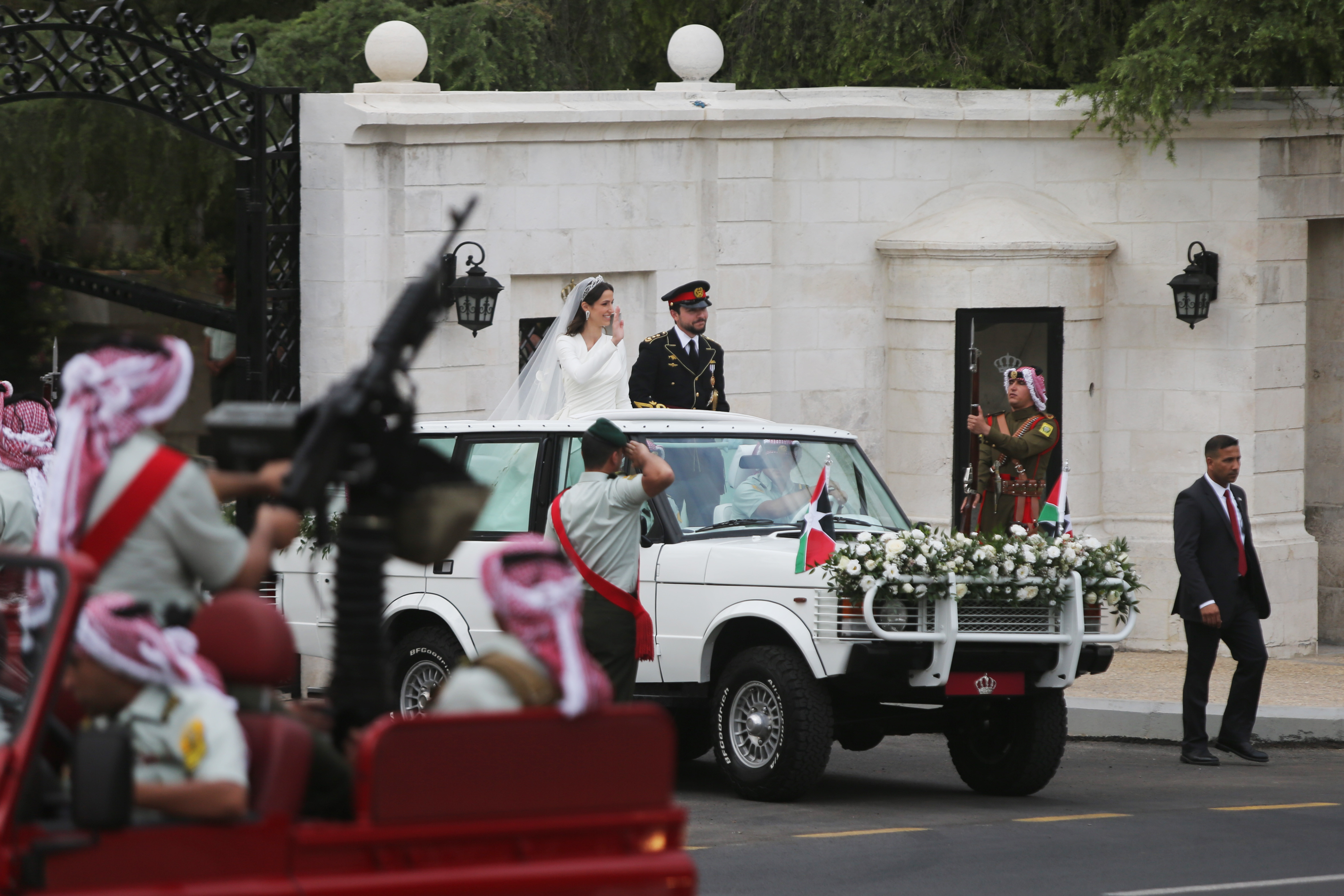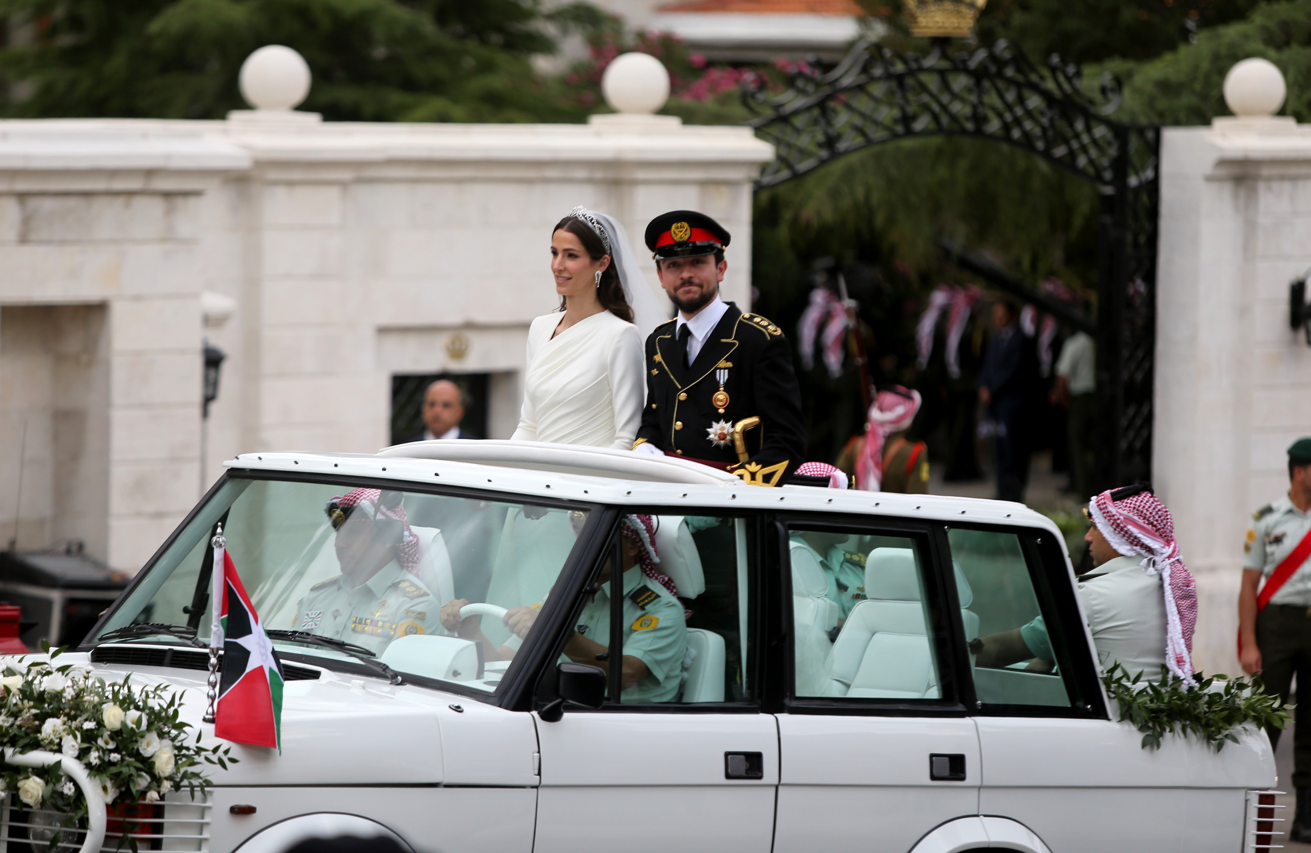 Petrecere de nuntă în grădina Palatului Regal și, separat, un banchet pentru înalții oaspeți. Așa s-a încheiat ziua în care și-au unit destinele prințul moștenitor al Regatului Iordaniei și mireasa lui, o arhitectă saudită, devenită de acum prințesă.