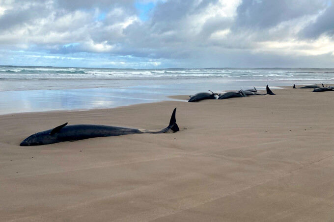 Peste 157 de delfini au eşuat pe o plajă din Australia. Operaţiune dificilă pentru salvarea lor. FOTO