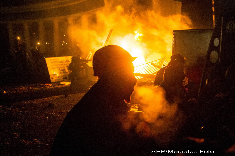 Confruntarile care au izbucnit miercuri dimineata la Kiev s-au intensificat, manifestanti aruncand cu cocteiluri Molotov in directia fortelor de ordine, care au ripostat cu cu gloante de cauciuc si grenade asurzitoare. Manifestantii s-au adapostit, la randul lor, in spatele unor vehicule de politie incendiate zilele trecute.