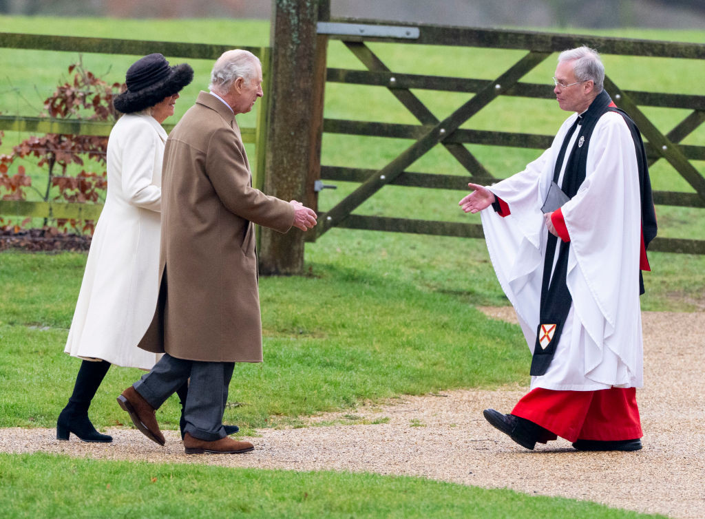 Însoțit de regina consoartă Camilla, regele a salutat oamenii înainte de a intra la slujbă. El a fost apoi întâmpinat de reverendul Paul Williams.