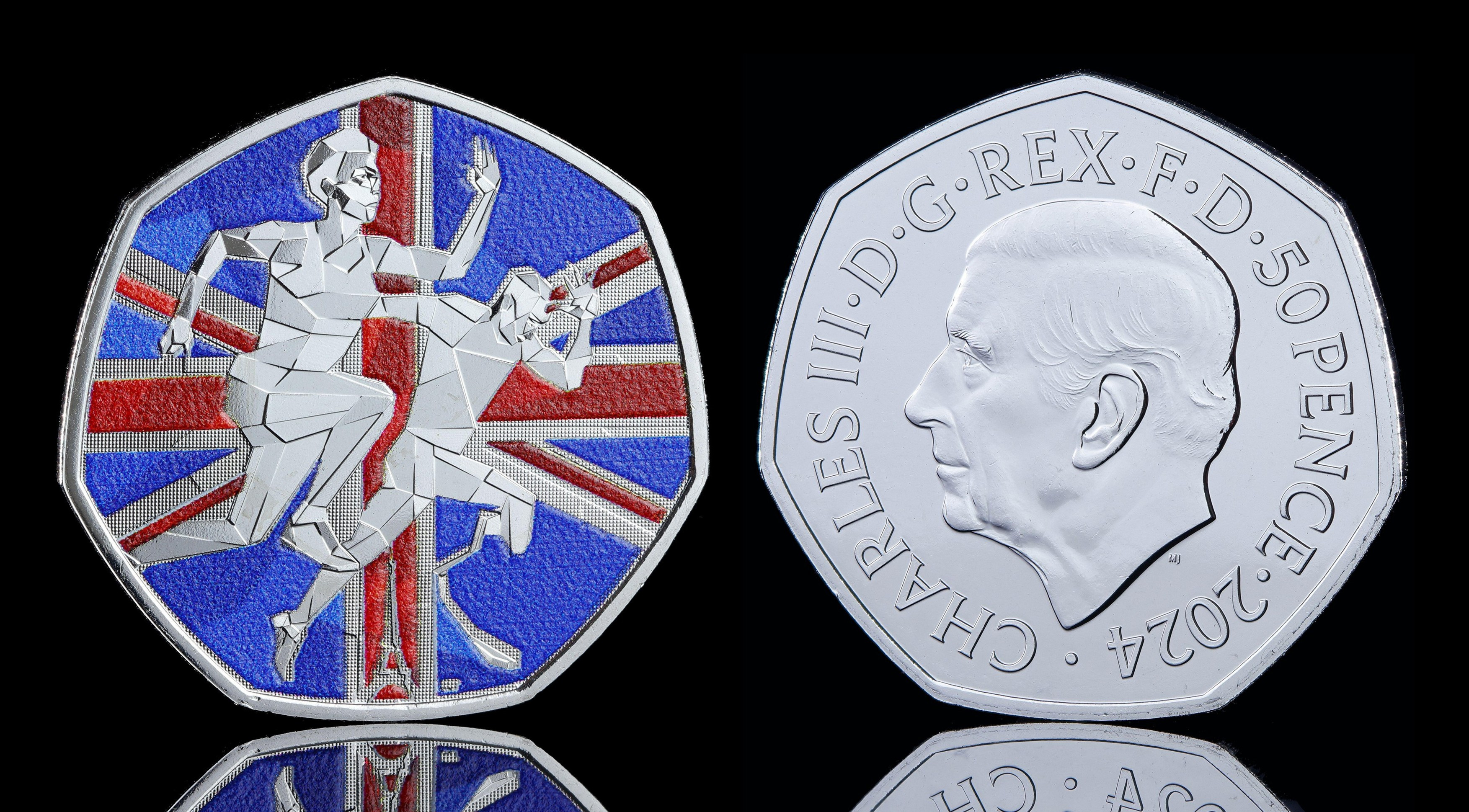După lansarea monedelor comemorative cu portretul regelui, prima monedă Charles al III-lea cu design definitiv - moneda de 50 de pence, care înfăţişează un somon de Atlantic - a fost lansată în noiembrie 2023.
