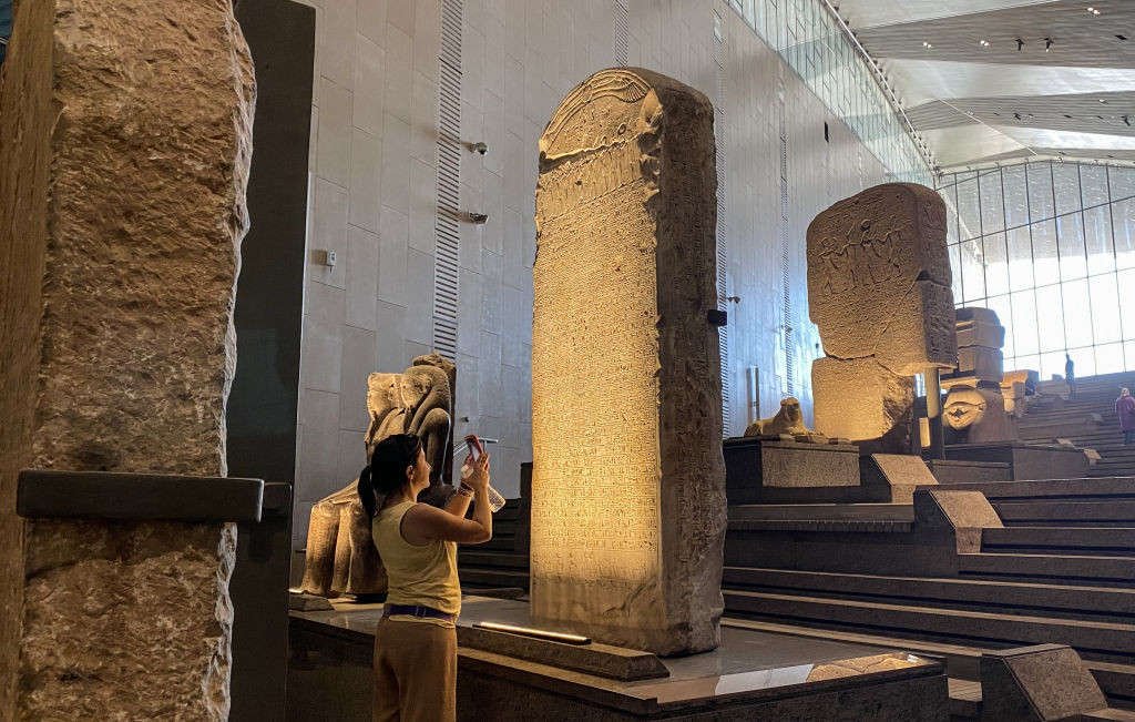 Holul de intrare principal al muzeului, cu scara sa de statui faraonice şi o anexă pentru magazine, a fost deschis publicului în februarie 2023.