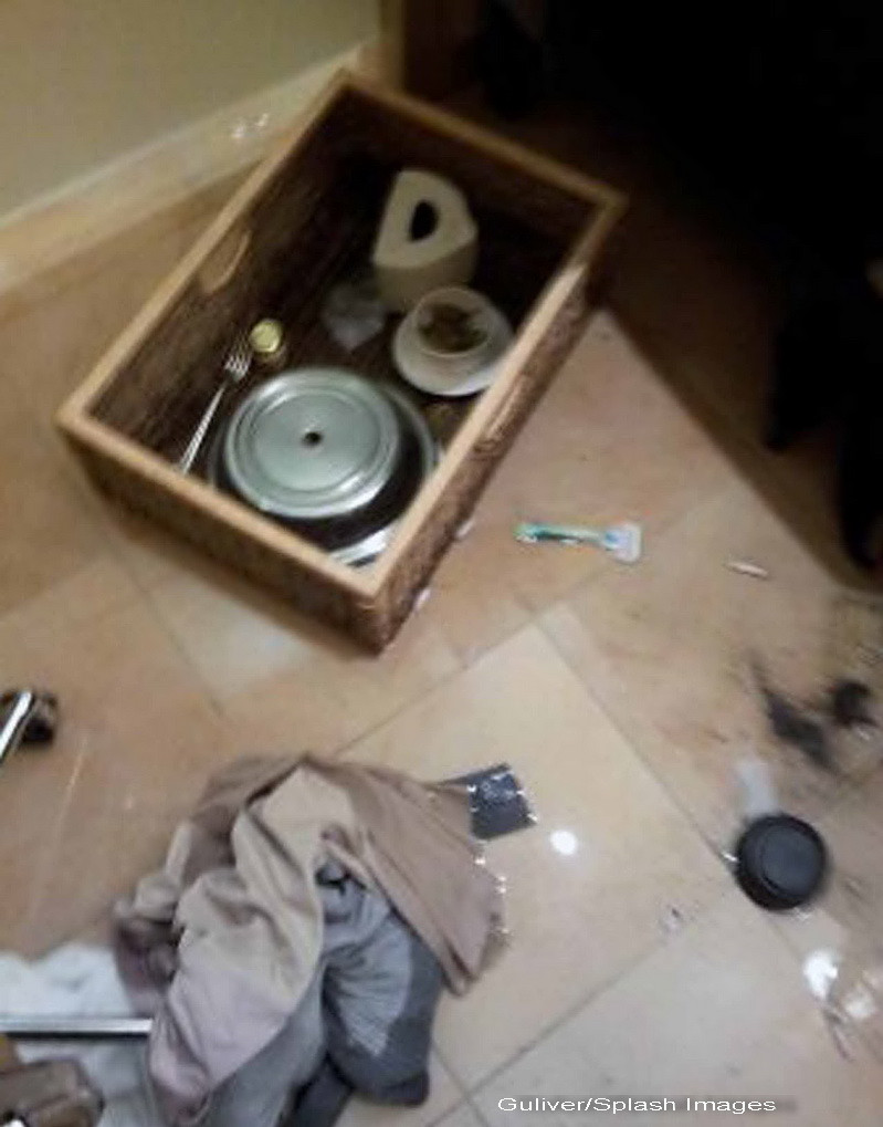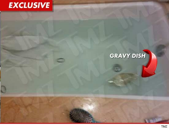 In fotografia din baie se vad hainele cantaretei, apa cazuta din cada cand matusa a scos-o pentru a o resuscita, dar si o parte din mancarea comandata, pe care vedeta intentiona sa o manance in baie.