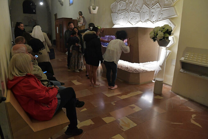Cu aproape un milion de vizitatori în 2024, potrivit diocezei, numărul vizitatorilor este în continuă creştere la Sanctuarul Spoliation din Assisi (centru), unde corpul adolescentului, cu faţa rotundă şi părul negru ca pana corbului, este expus îmbrăcat în blugi, bascheţi şi jachetă de jogging.