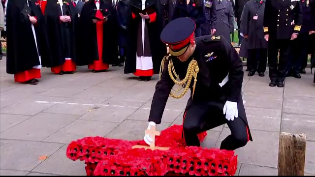 De această dată la o ceremonie în onoarea Zilei Amintirilor, în care sunt comemoraţi militarii britanici morţi pe linia frontului au ţinut un moment de reculegere şi au depus câte o cruce în miniatură, la Catedrala Westminster.