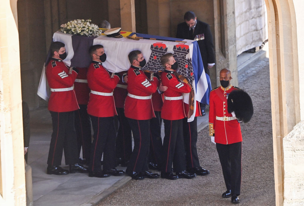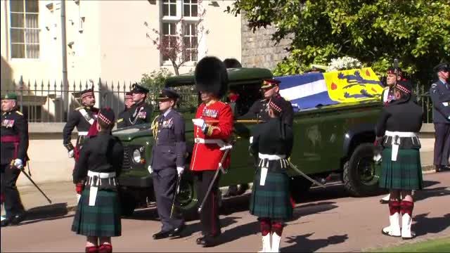 Flancat de prieteni apropiaţi ai ducelui de Edinburgh şi de reprezentanţi ai Marinei şi Aviaţiei Regale, sicriul prinţului Philip va fi transferat din castel până la capelă Saint George cu un automobil Land Rover personalizat. Chiar soţul reginei a participat la realizarea designului special al acestuia.