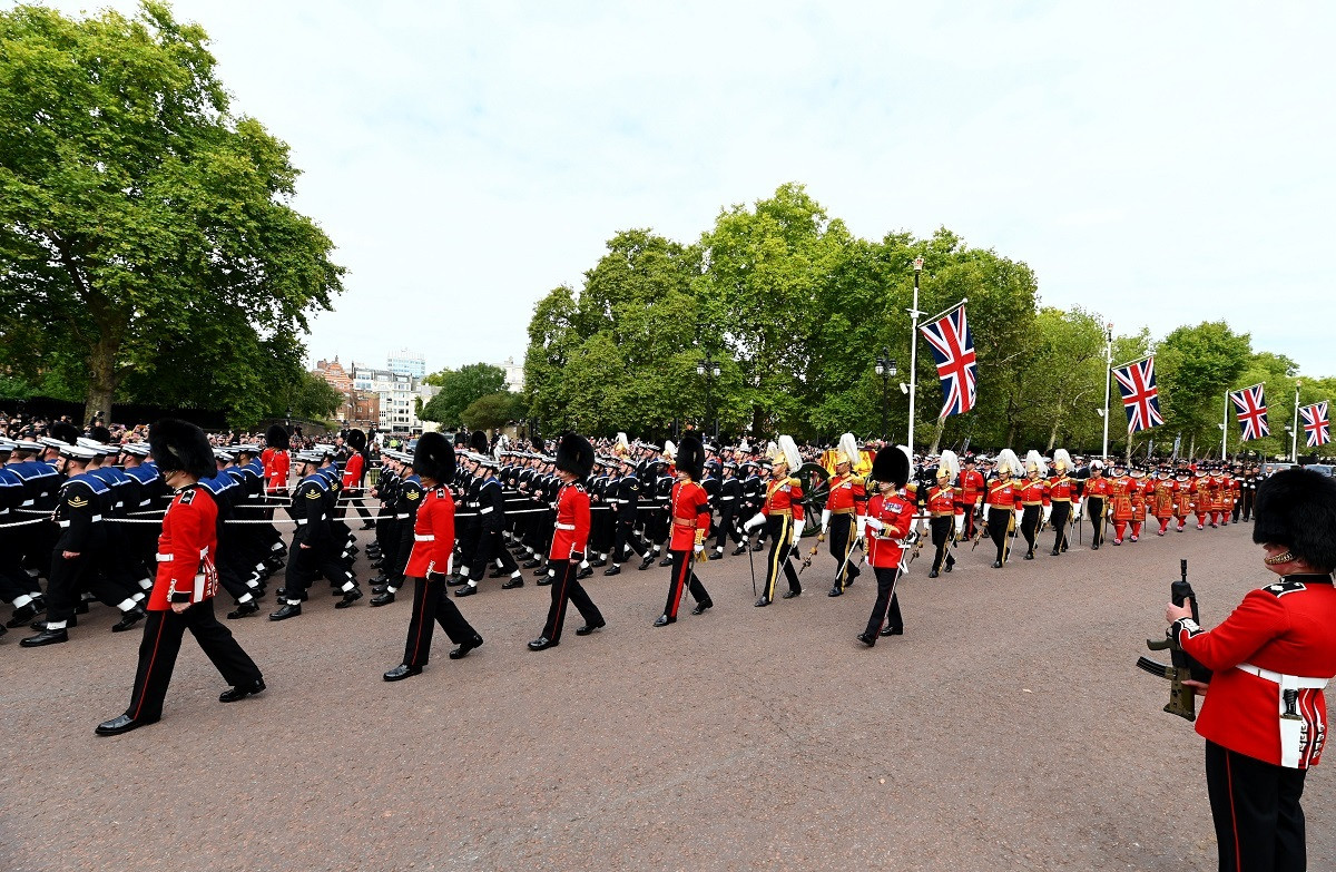 Sicriul Reginei a fost scos din Westmister Abbey, plasat pe un afet de tun și purtat pe străzile din Londra însoțit de o paradă militară din care au făcut parte toate trupele militare ale Marii Britanii și ale țărilor care fac parte din Commonwealth-ului.