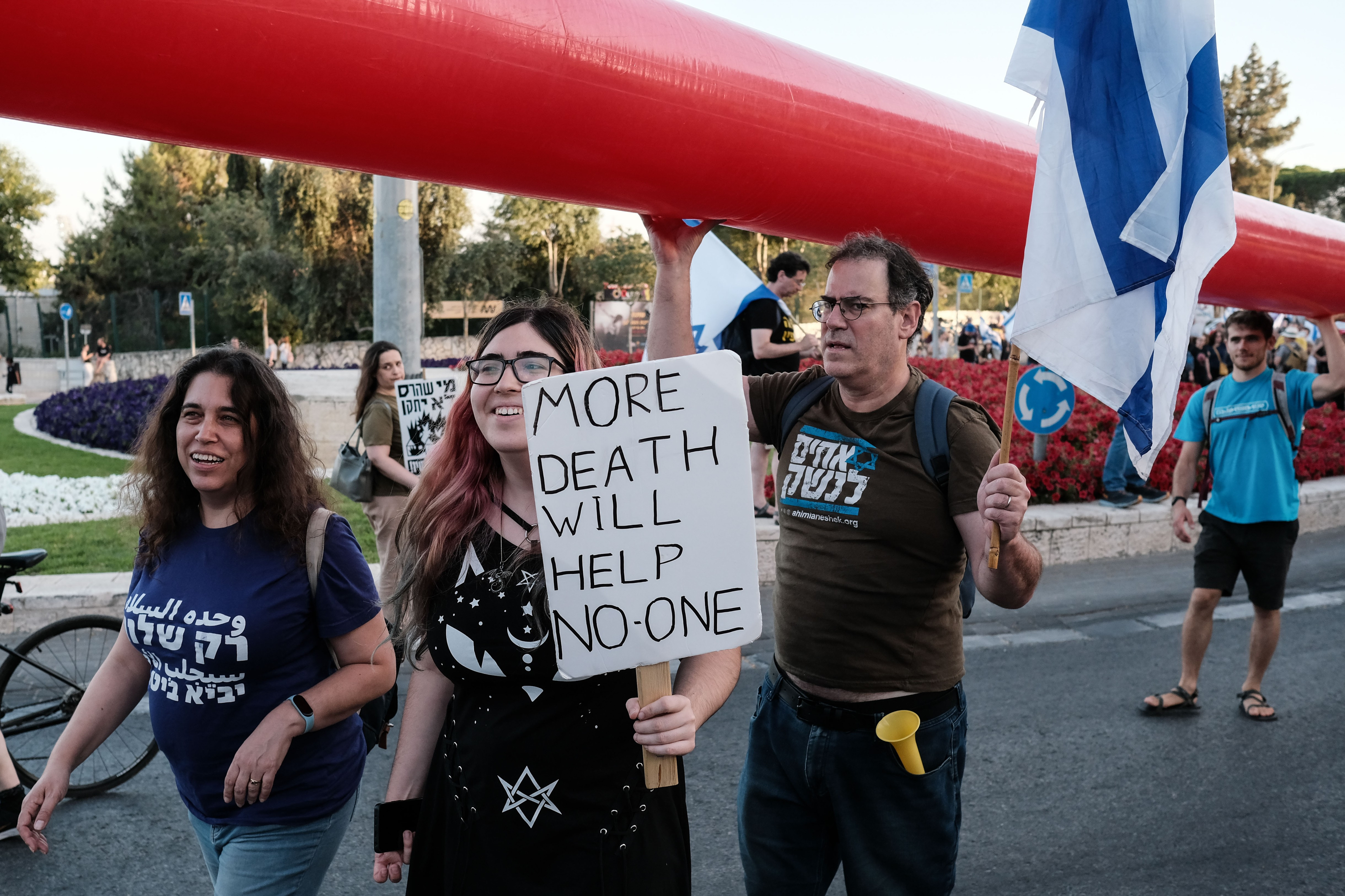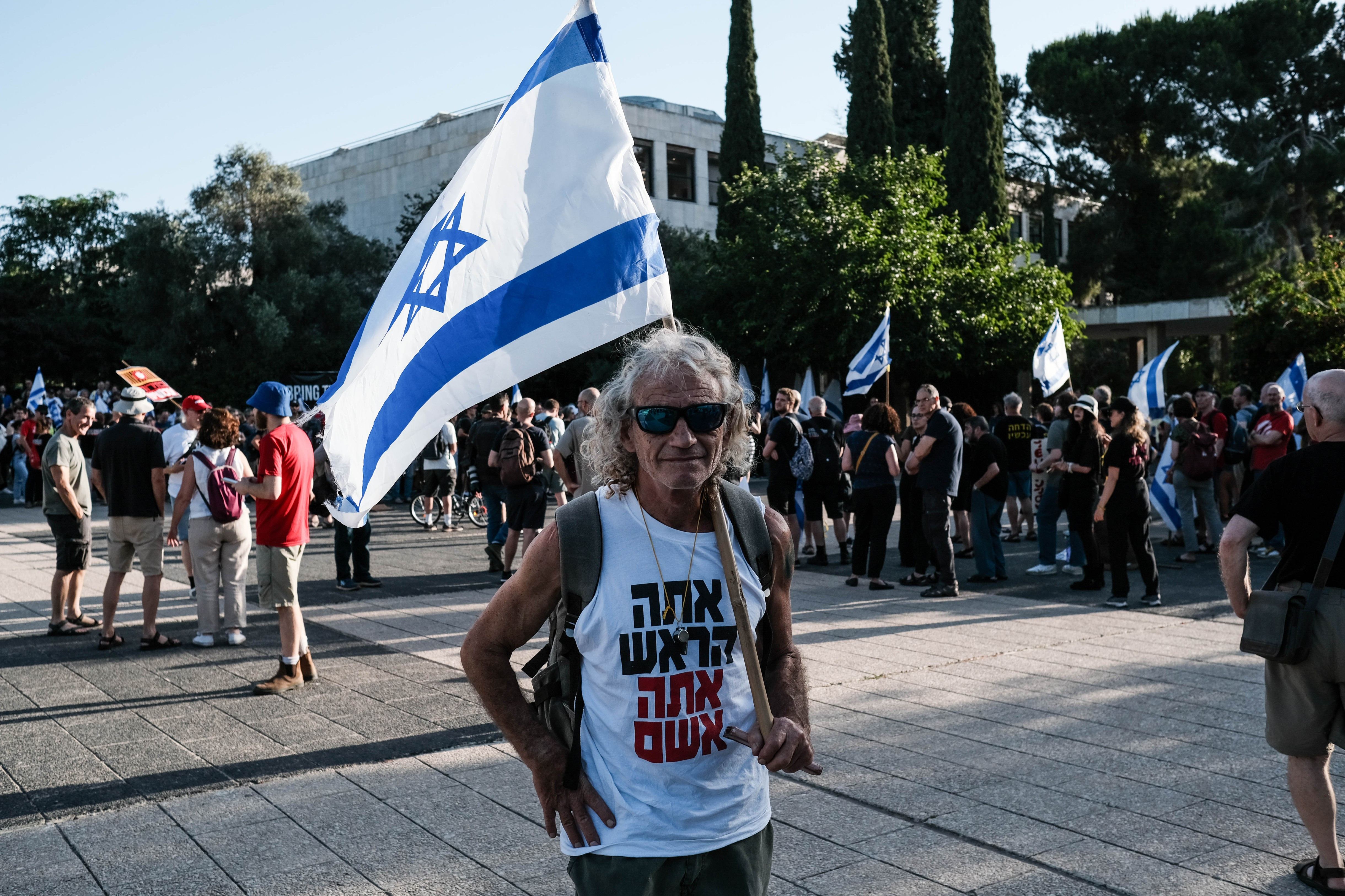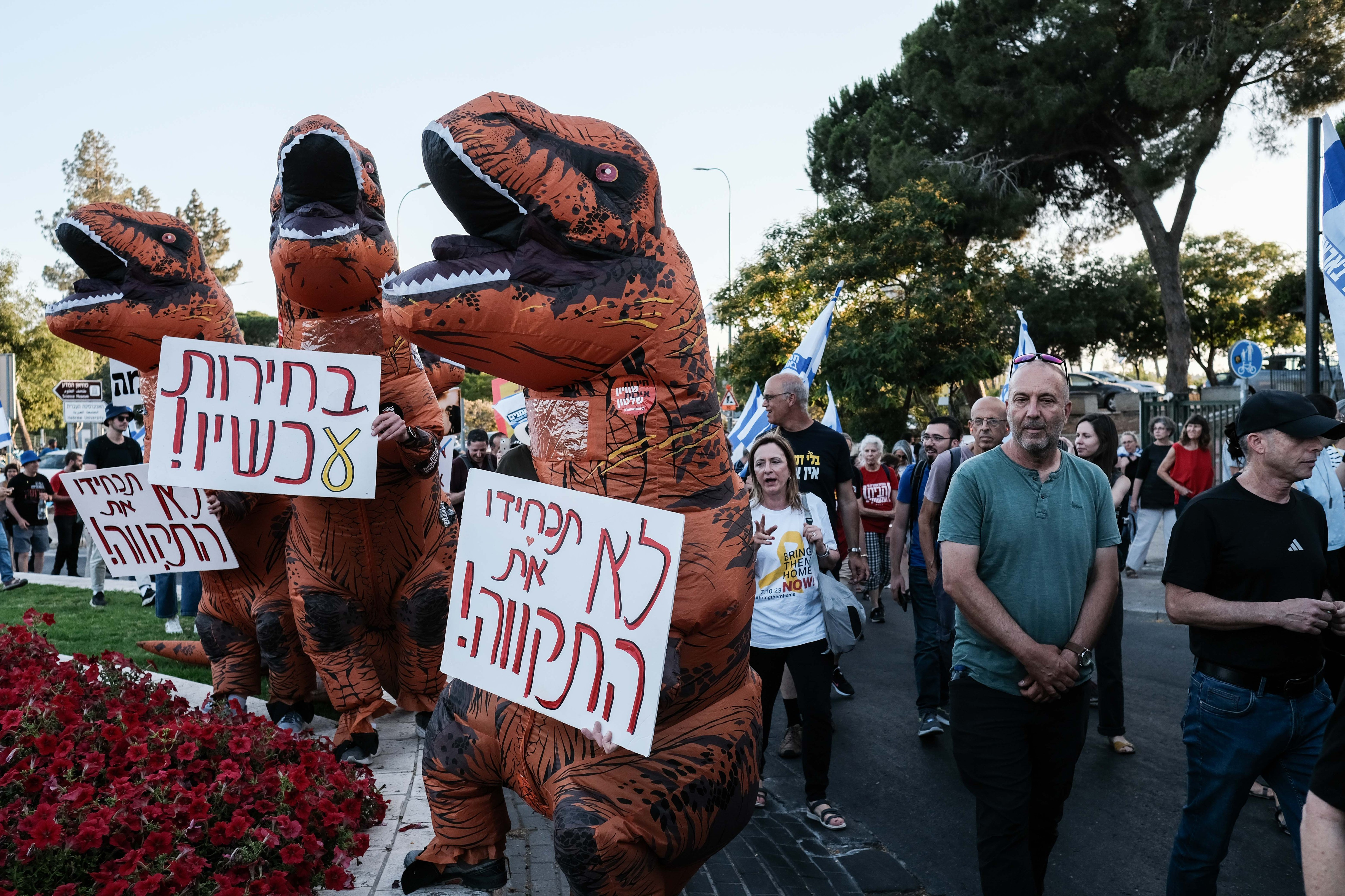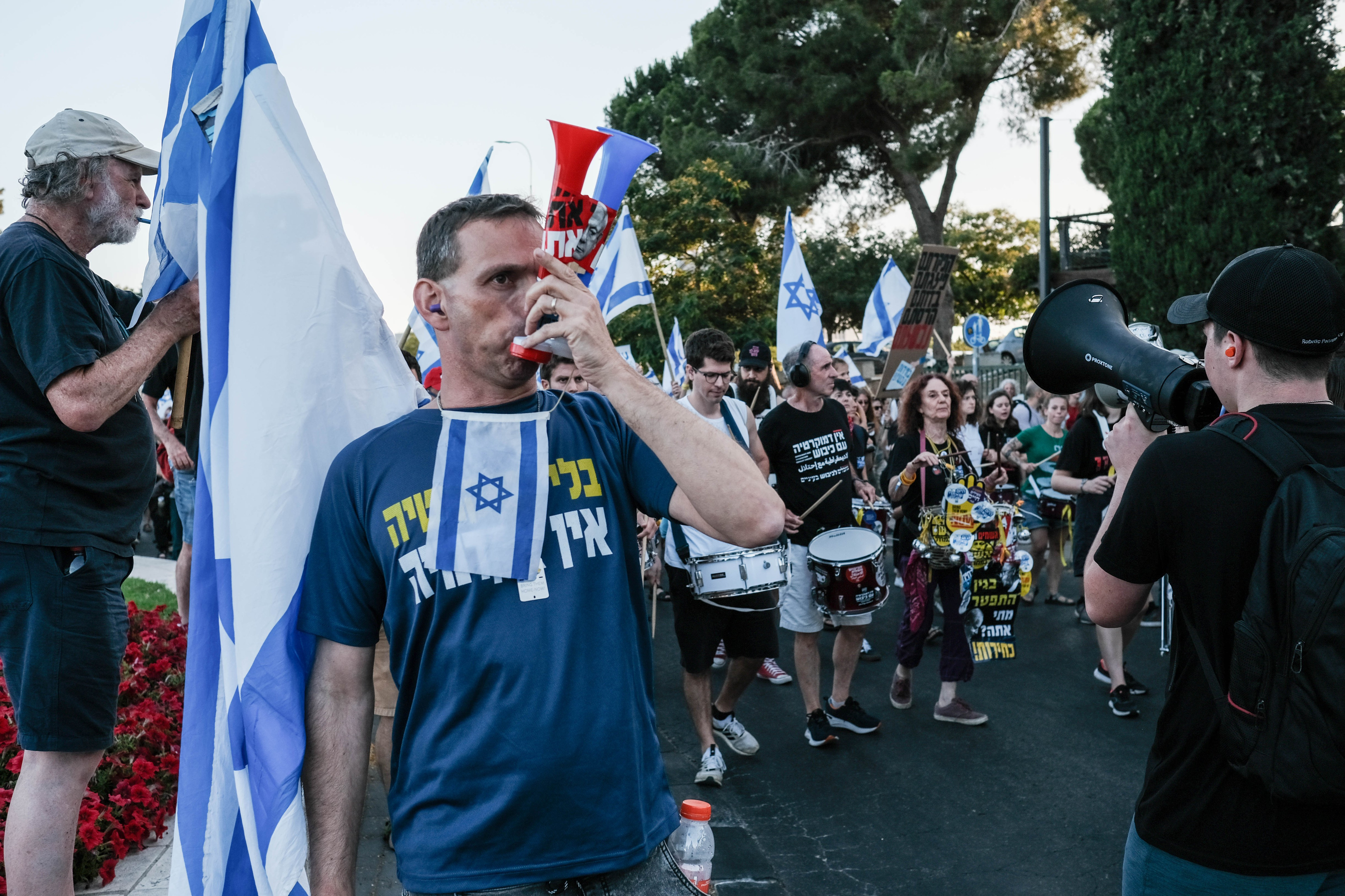 Mulţi dintre manifestanţi au agitat drapele israeliene. Alţii au purtat pancarte cu mesaje prin care criticau modul în care Netanyahu a gestionat problemele esenţiale, cum ar fi promovarea unui proiect de lege de recrutare militară care îi scuteşte pe evreii ultraortodocşi de serviciul militar obligatoriu, precum şi modul în care a gestionat războiul cu Hamas în Fâşia Gaza şi luptele cu Hezbollahul din Liban.
