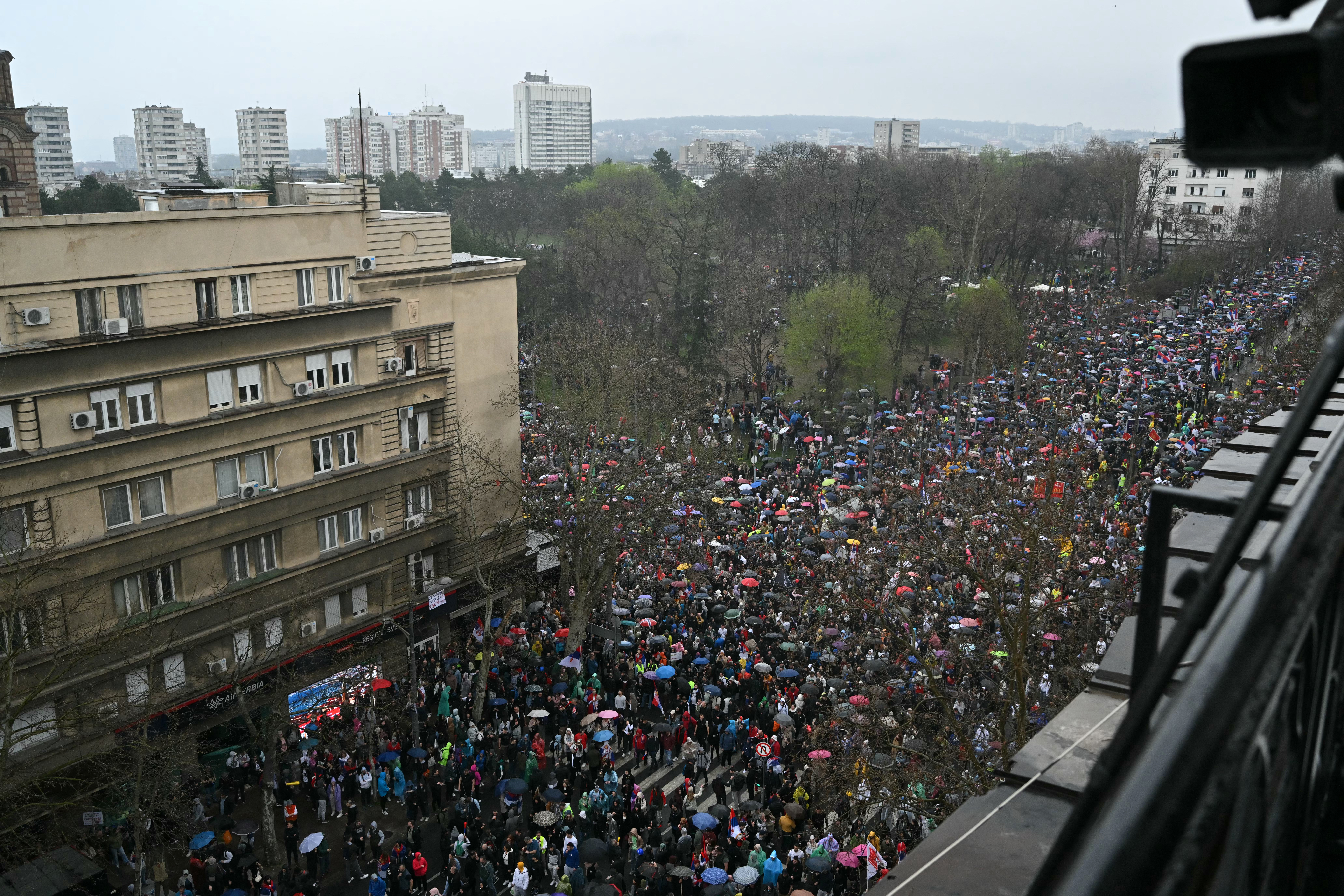 Peste 100.000 de protestatari s-au adunat sâmbătă în capitala Serbiei, Belgrad, pentru a participa la unul dintre cele mai ample mitinguri din ultimele decenii.
