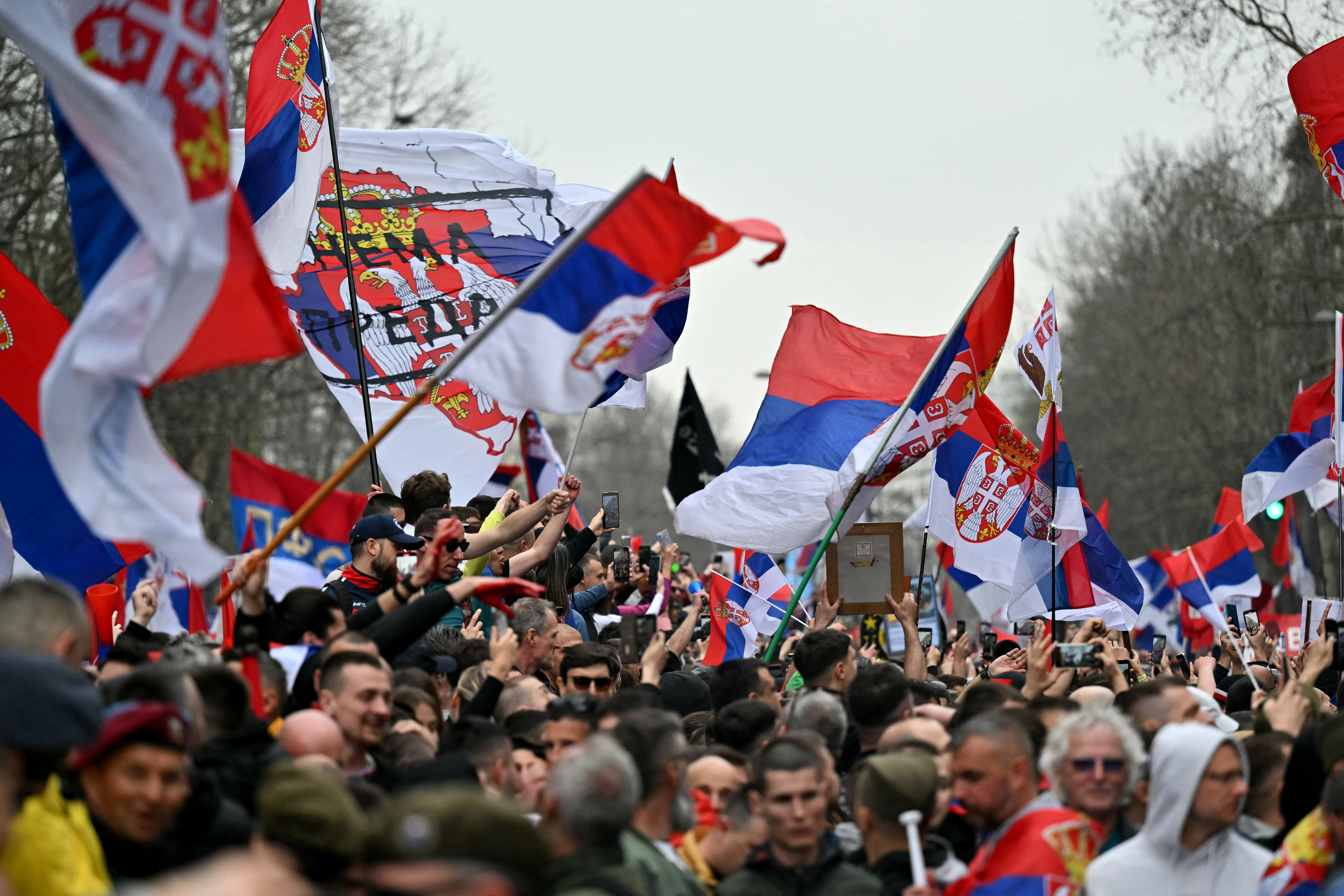 „Cred că tensiunile şi problemele nu vor apărea decât dacă regimul le provoacă”, a declarat Bojan Popovic, 22 de ani, un student care purta un steag sârbesc.