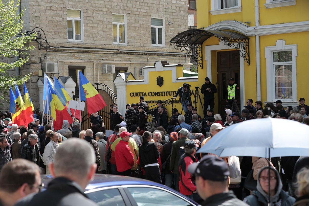 Simpatizanţii Partidului „ŞOR” s-au adunat, vineri, în faţa Curţii Constituţionale de la Chişinău protestând în timp ce magistraţii examinează o sesizare de neconstituţionalitate a formaţiunii politice conduse de oligarhul fugar Ilan Şor, care a fost condamnat la 15 ani închisoare în dosarul referitor la sustragerea unui miliard de dolari din băncile Republicii Moldova. Nostalgici după vremurile sovietice, manifestanţii strigă sloganuri împotriva guvernării prooccidentale a ţării şi îşi arată simpatia faţă de Moscova, relatează presa locală.