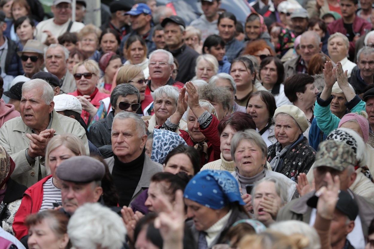 „Ieşim în stradă noi, bătrânii, care am trăit cu ruşii şi care ştiu cum s-a trăit atunci, ca aceştia tineri nu ştiu cum a fost înainte vremea. Ei gândesc că acum e bine. O să se mântuie (termine - n.r.) Europa. Vrem să trăim cu ruşii. Cu ruşii am învăţat, cu ruşii mi-am învăţat copiii”, spune un protestatar mai în vârstă.