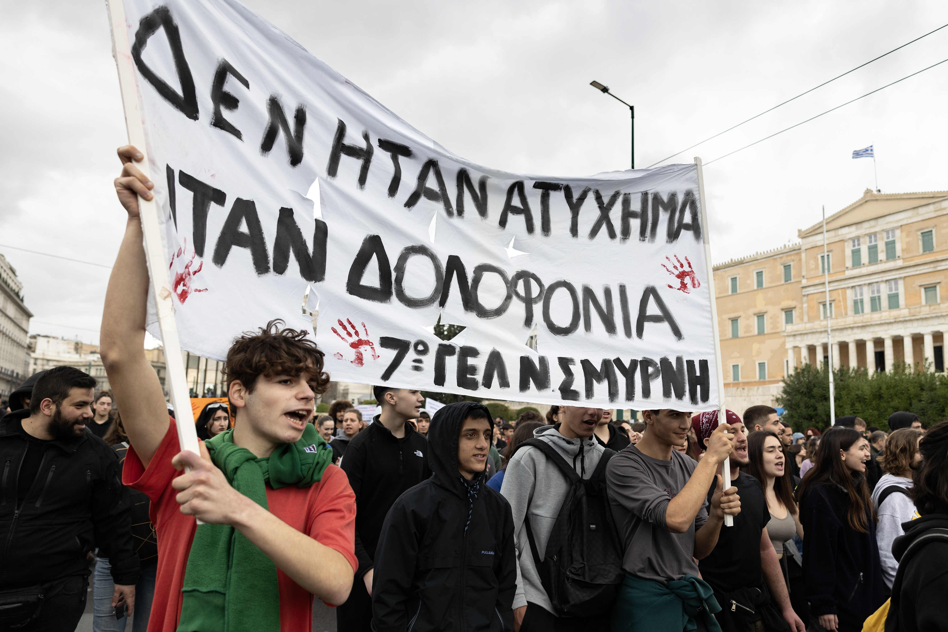 La apelul multor sindicate, inclusiv cel al sectorului public, aflat într-o grevă de 24 de ore, peste 20.000 de persoane au manifestat la Atena şi 10.000 la Salonic, al doilea oraş ca mărime al ţării, în timp ce mai mult de o mie de oameni, mai ales rude ale victimelor, s-au recules la locul accidentului în Valea Tembi (centru), relatează France Presse şi Reuters, citate de Agerpres.