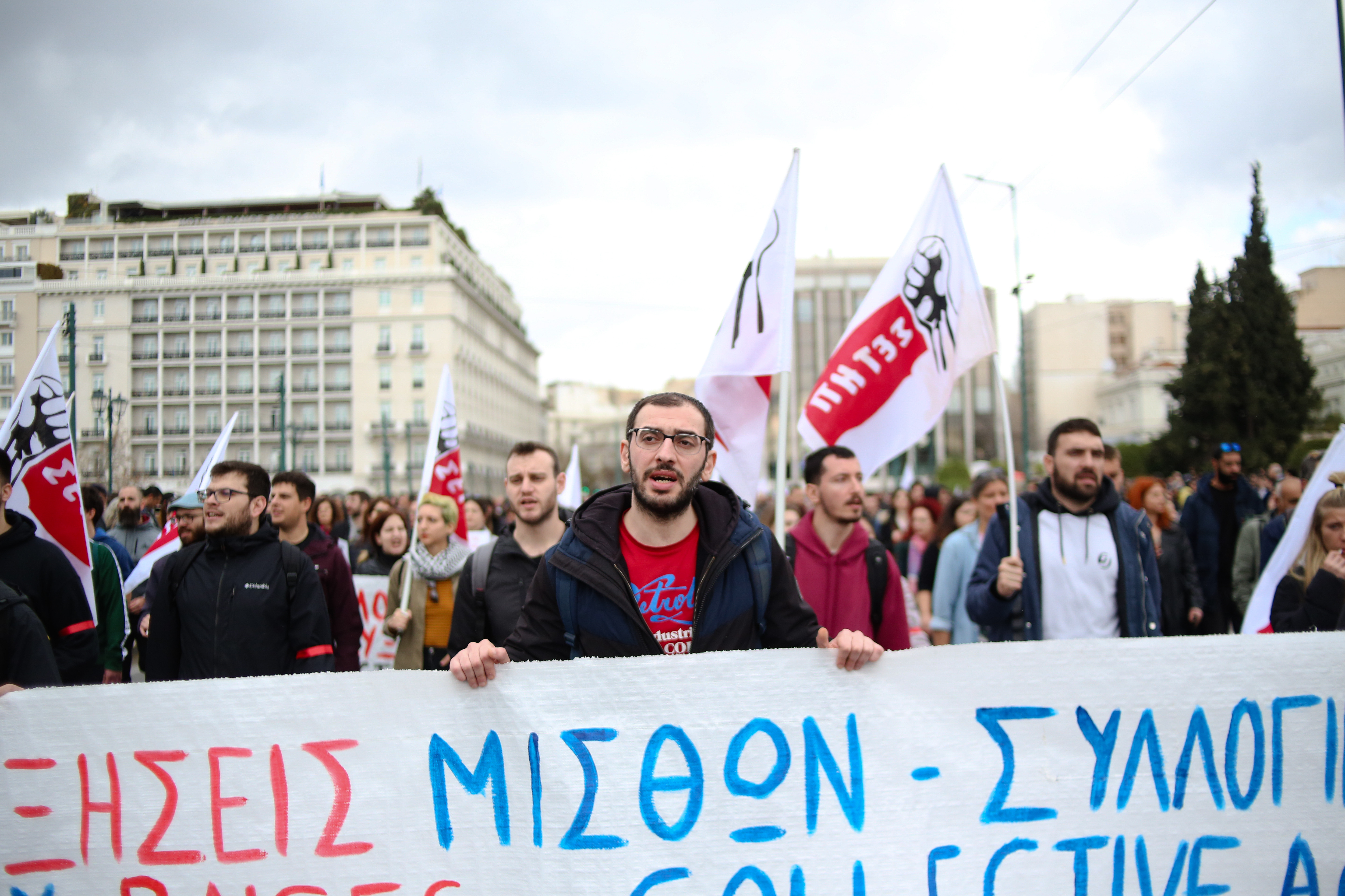 Mulţi dintre ei, inclusiv studenţi, au început să manifesteze la punctele de întâlnire din centrul Atenei, în timp ce se pregăteau pentru un marş către parlament.