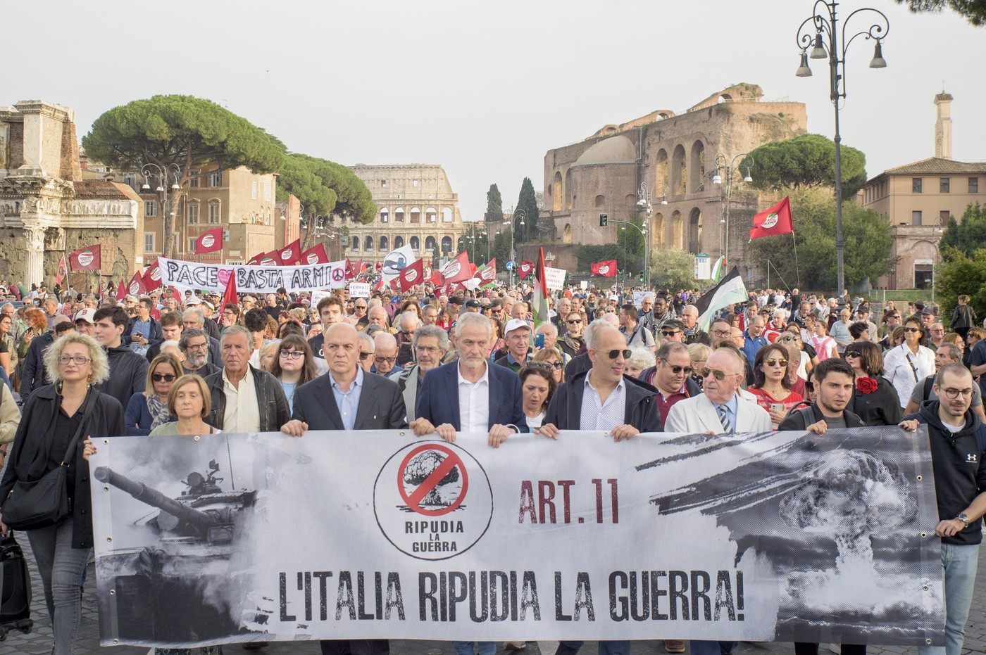 Zeci de mii de persoane au defilat sâmbătă în mai multe oraşe din Italia, unde au cerut pacea în Fâşia Gaza şi Ucraina, relatează Euronews.