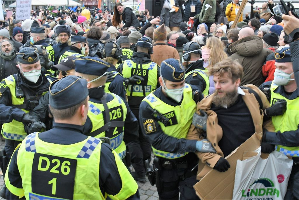 Demonstraţia nu a fost autorizată. La scurt timp după ce protestatarii s-au adunat într-una din principalele pieţe din capitala Suediei, forţele de ordine le-au cerut să se disperseze.