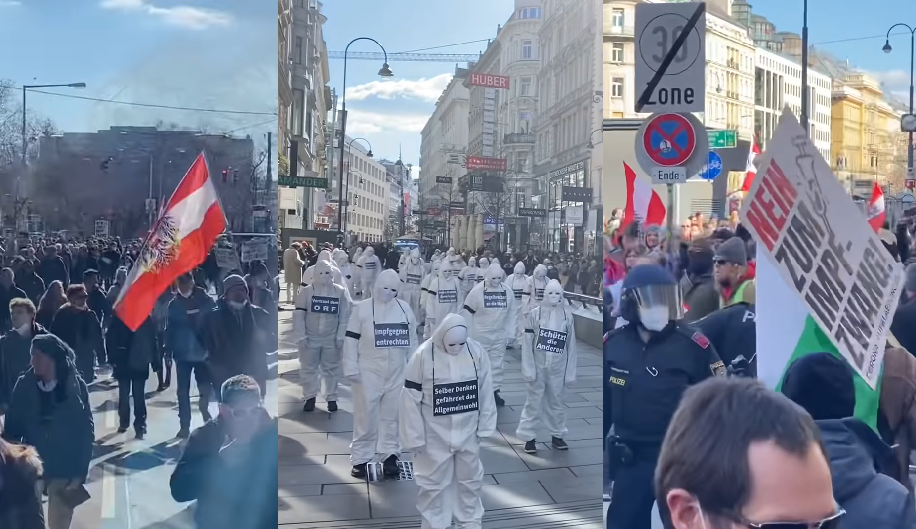 Majoritatea participanţilor nu purtau mască şi nu respectau distanţa fizică în timp ce traversau centrul oraşului spre Parcul Prater, unde partidul de extremă-dreapta FPO a făcut apel la o adunare.