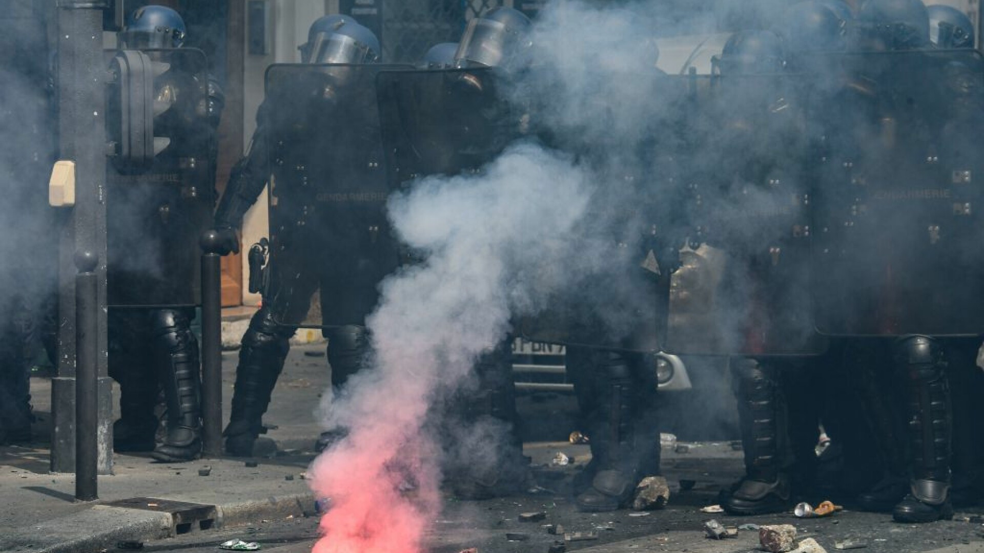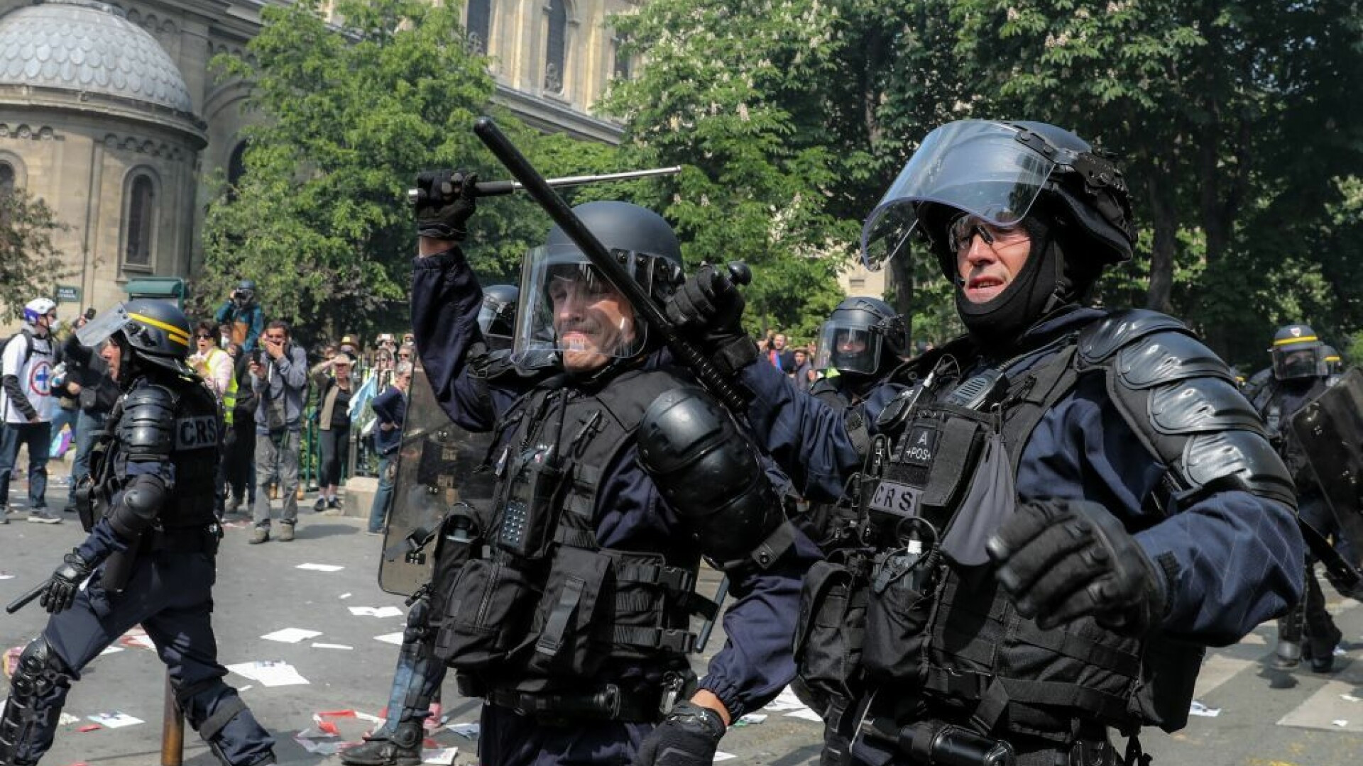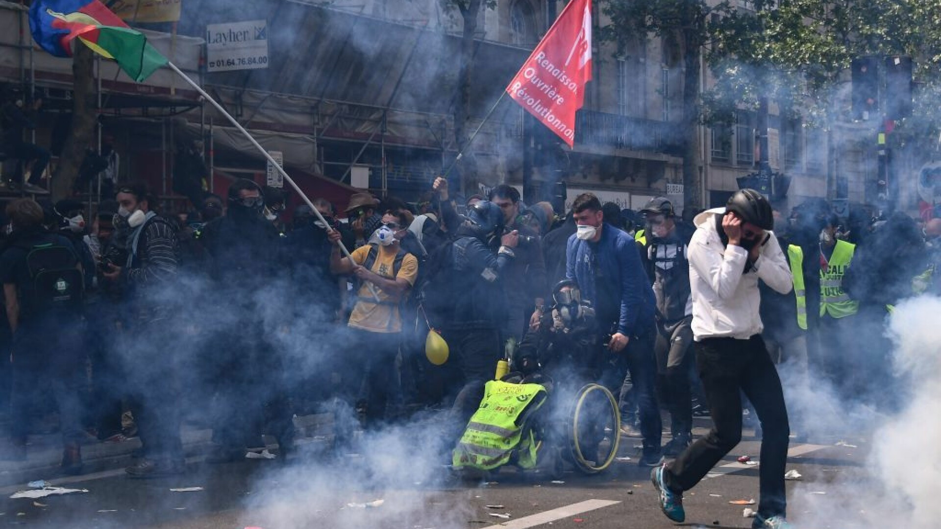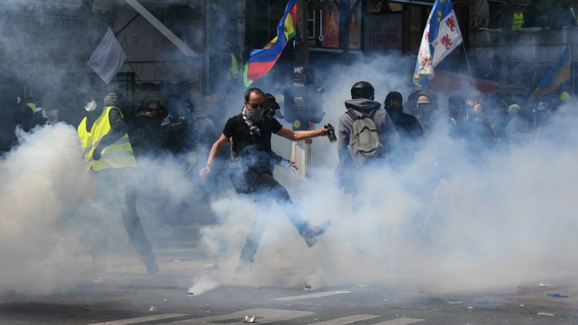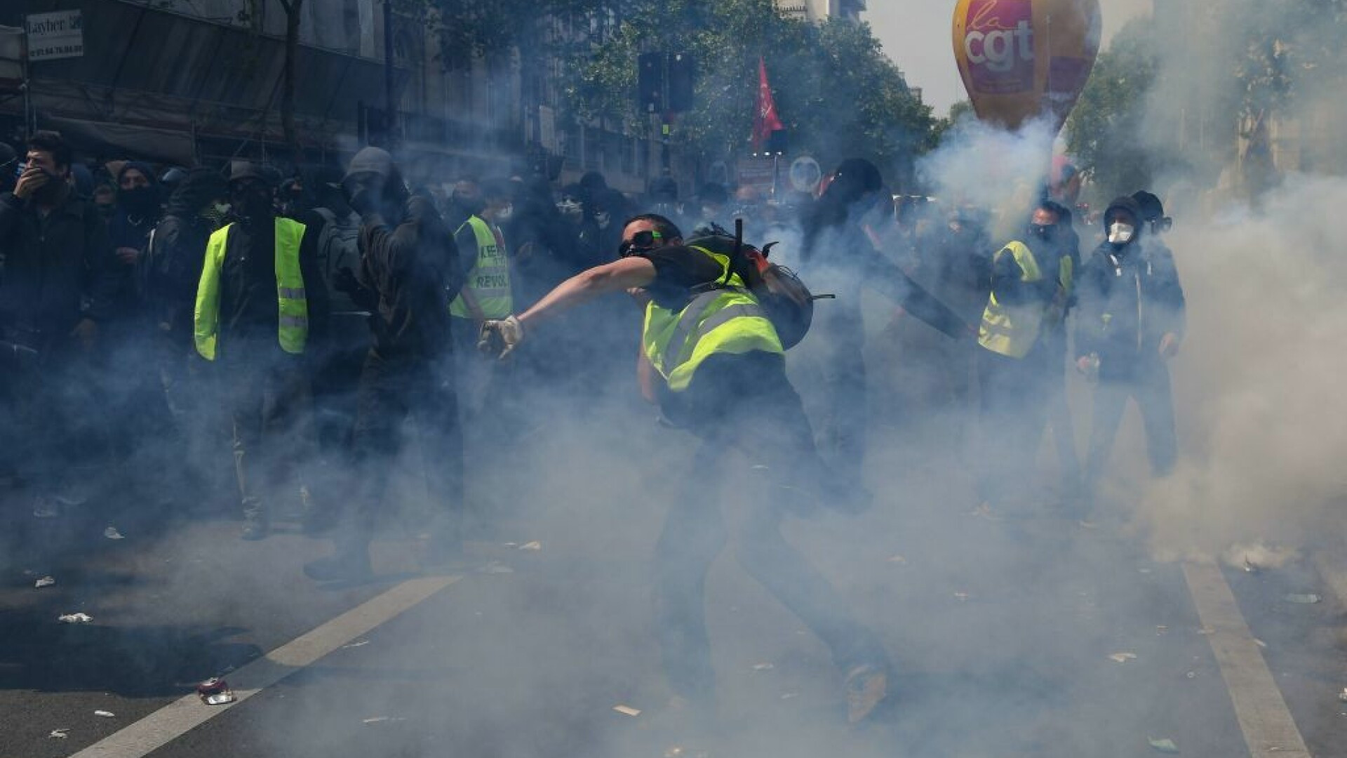 Bătăi de stradă în Franța de 1 Mai. Polițiștii, atacați de tineri mascați. VIDEO