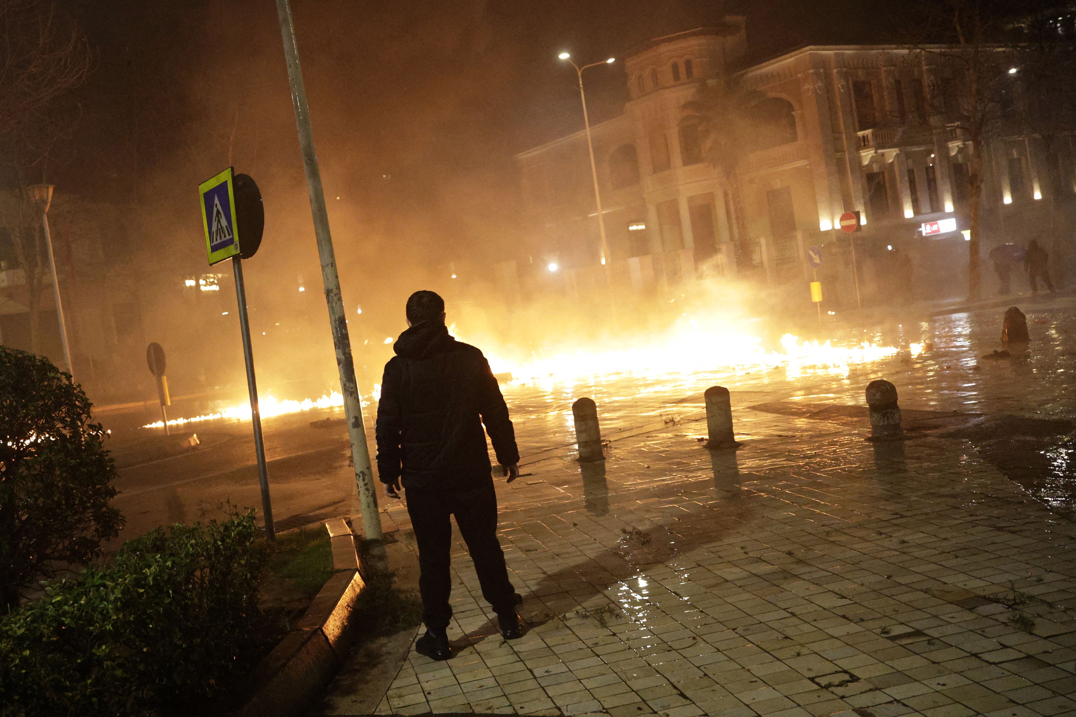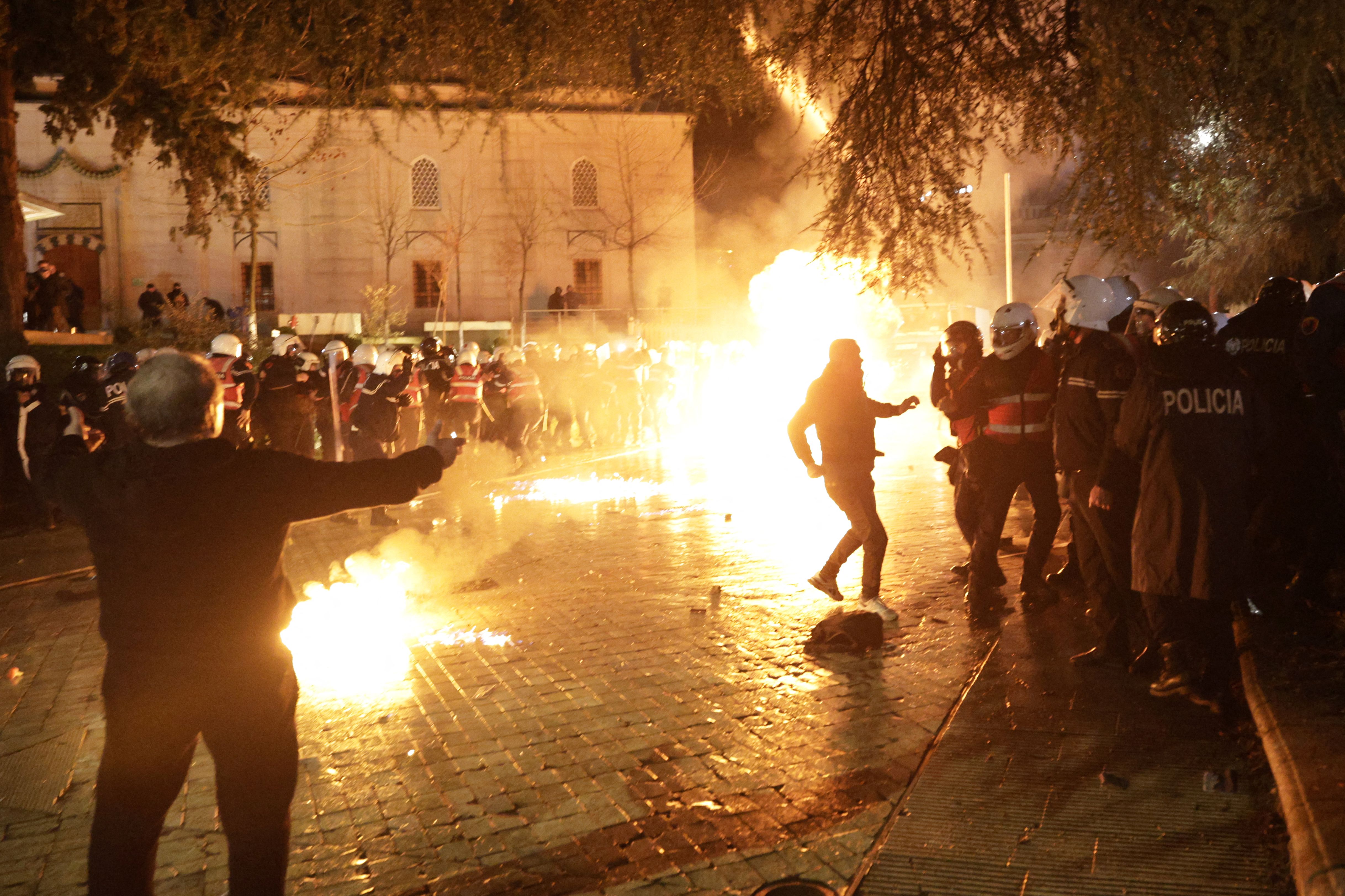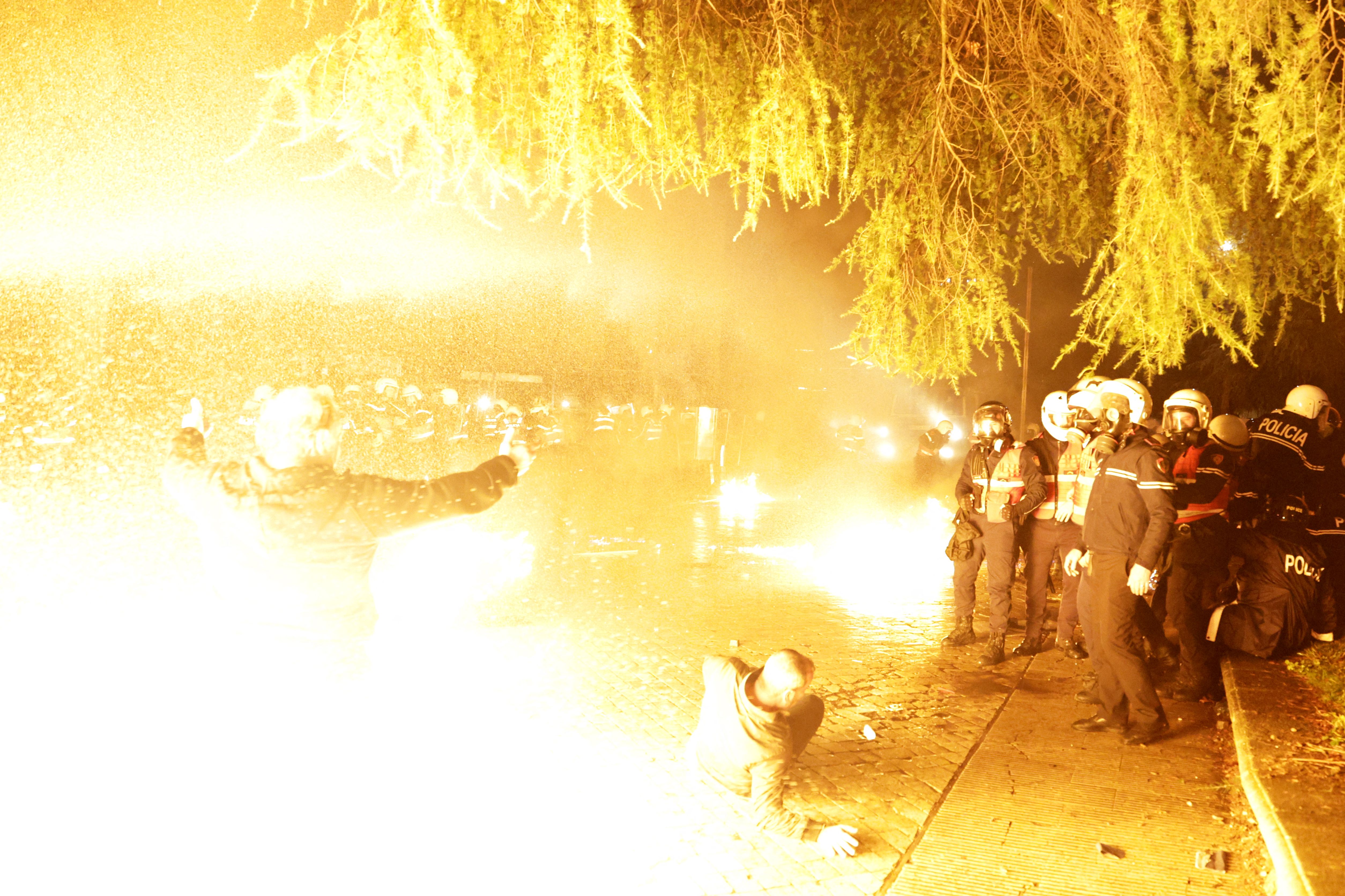 Manifestanţii au aruncat cu cocktailuri Molotov asupra unei clădiri guvernamentale, iar poliţia a răspuns folosind tunuri cu apă, în cel mai recent protest dintr-o serie de manifestaţii violente care reprezintă o ameninţare la adresa stabilităţii guvernării de lungă durată a premierului Edi Rama, care a preluat conducerea în 2013.