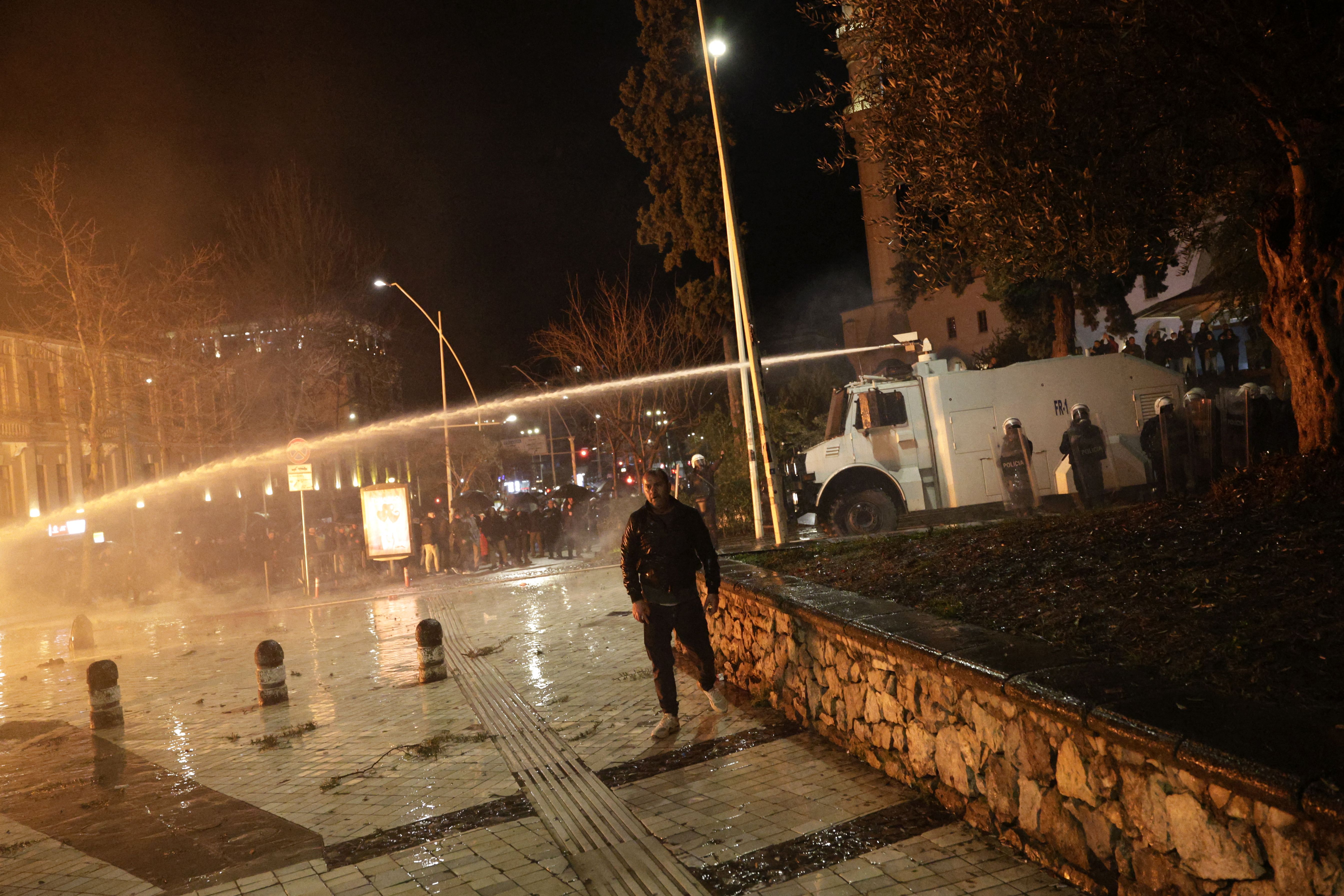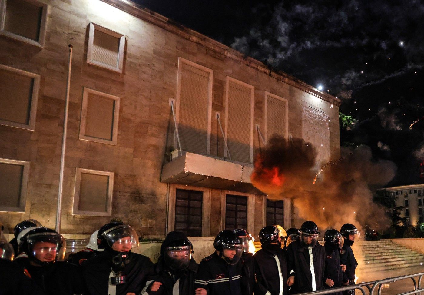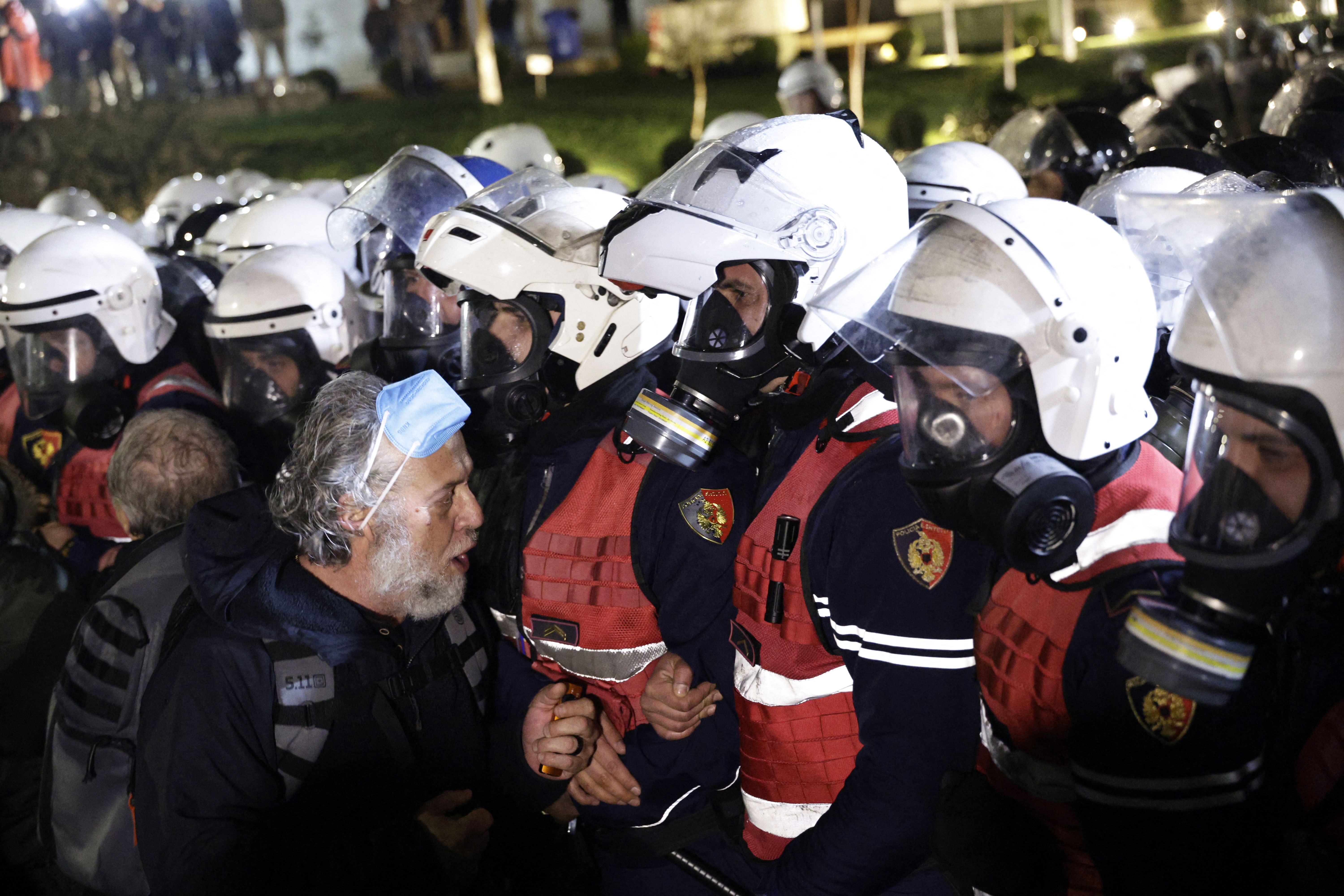 Manifestanţii au aruncat cu cocktailuri Molotov asupra unei clădiri guvernamentale, iar poliţia a răspuns folosind tunuri cu apă, în cel mai recent protest dintr-o serie de manifestaţii violente care reprezintă o ameninţare la adresa stabilităţii guvernării de lungă durată a premierului Edi Rama, care a preluat conducerea în 2013.