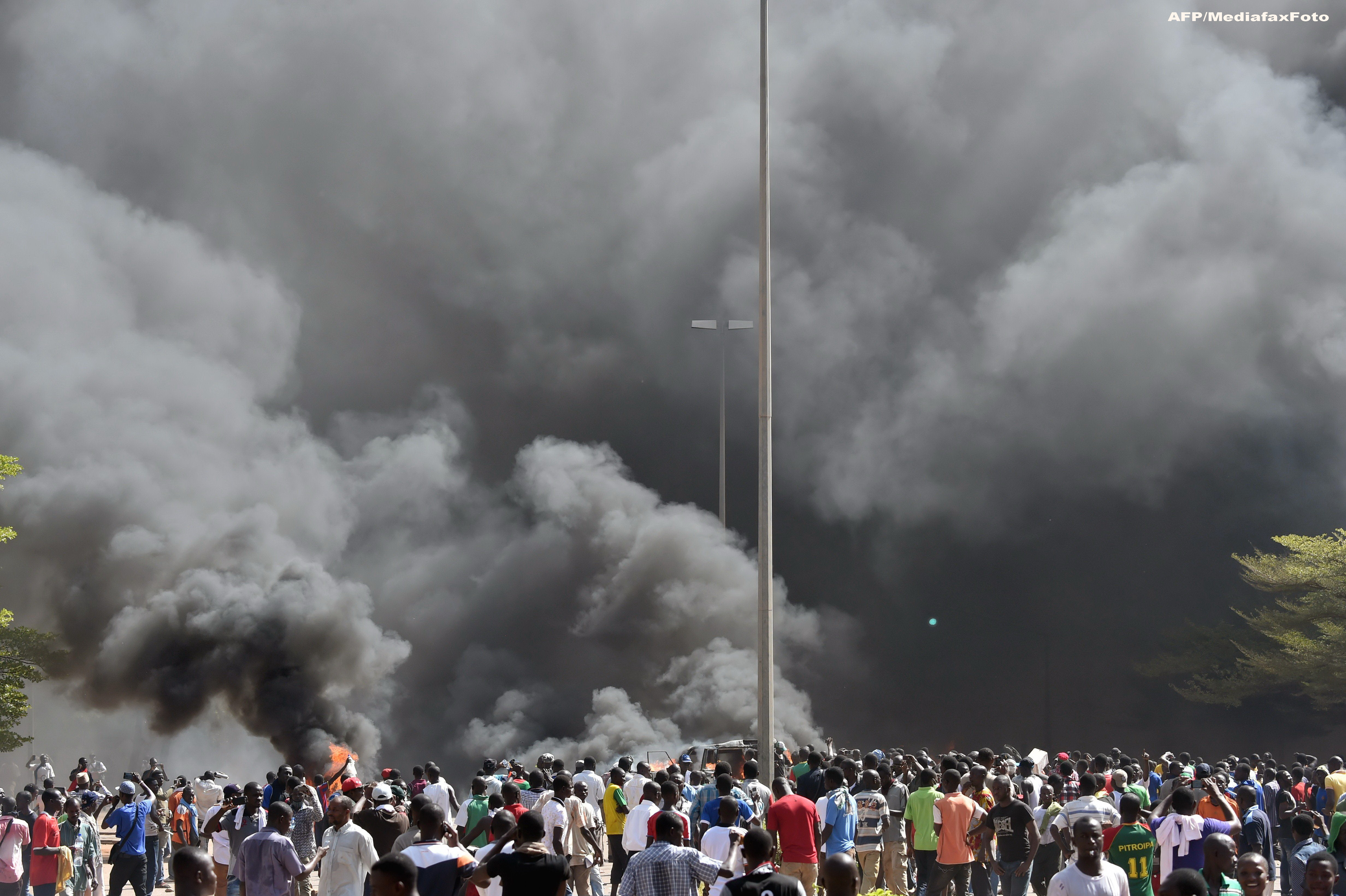 Protestele din Burkina Faso, in IMAGINI. Populatia furioasa a incendiat sediile Parlamentului si Guvernului