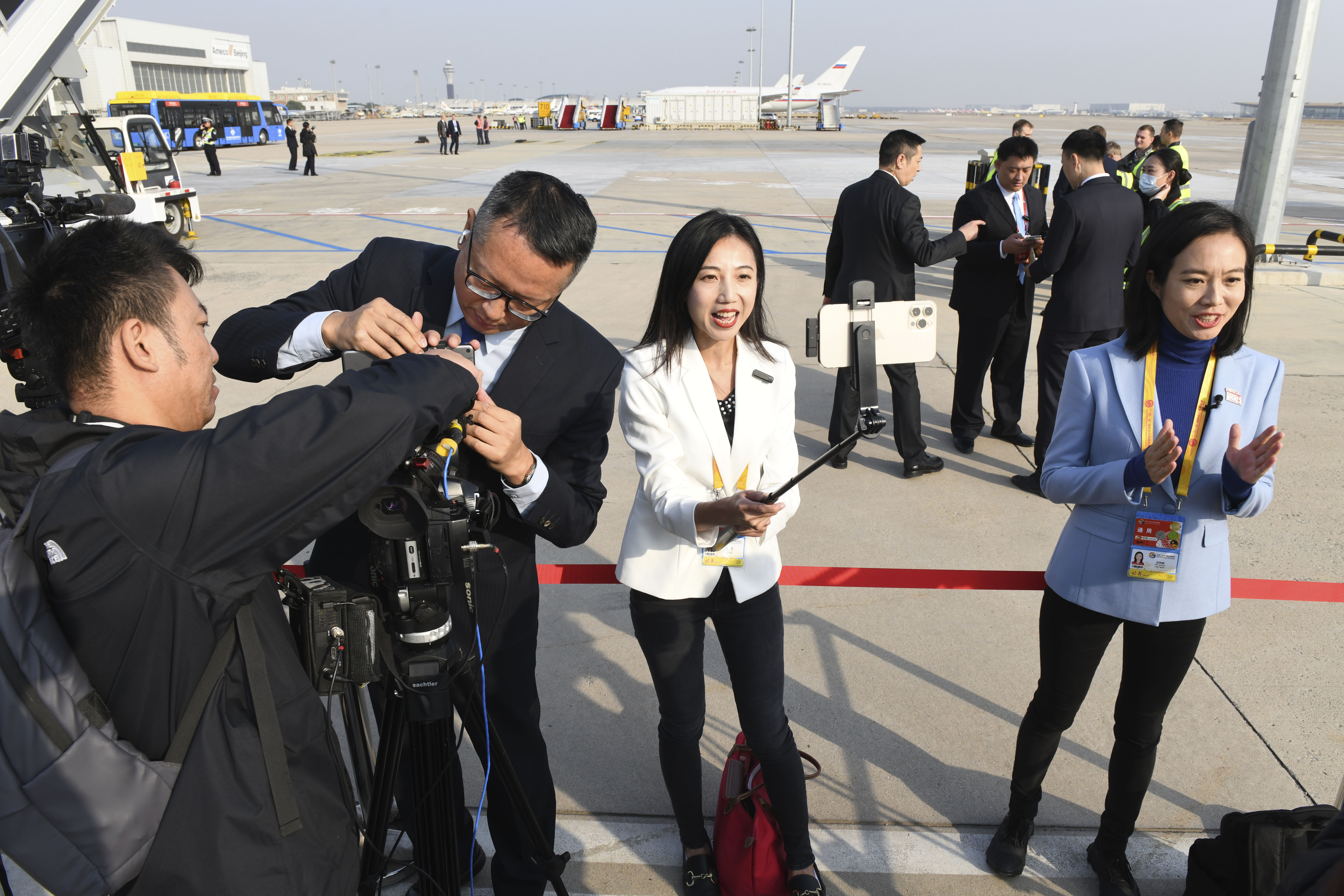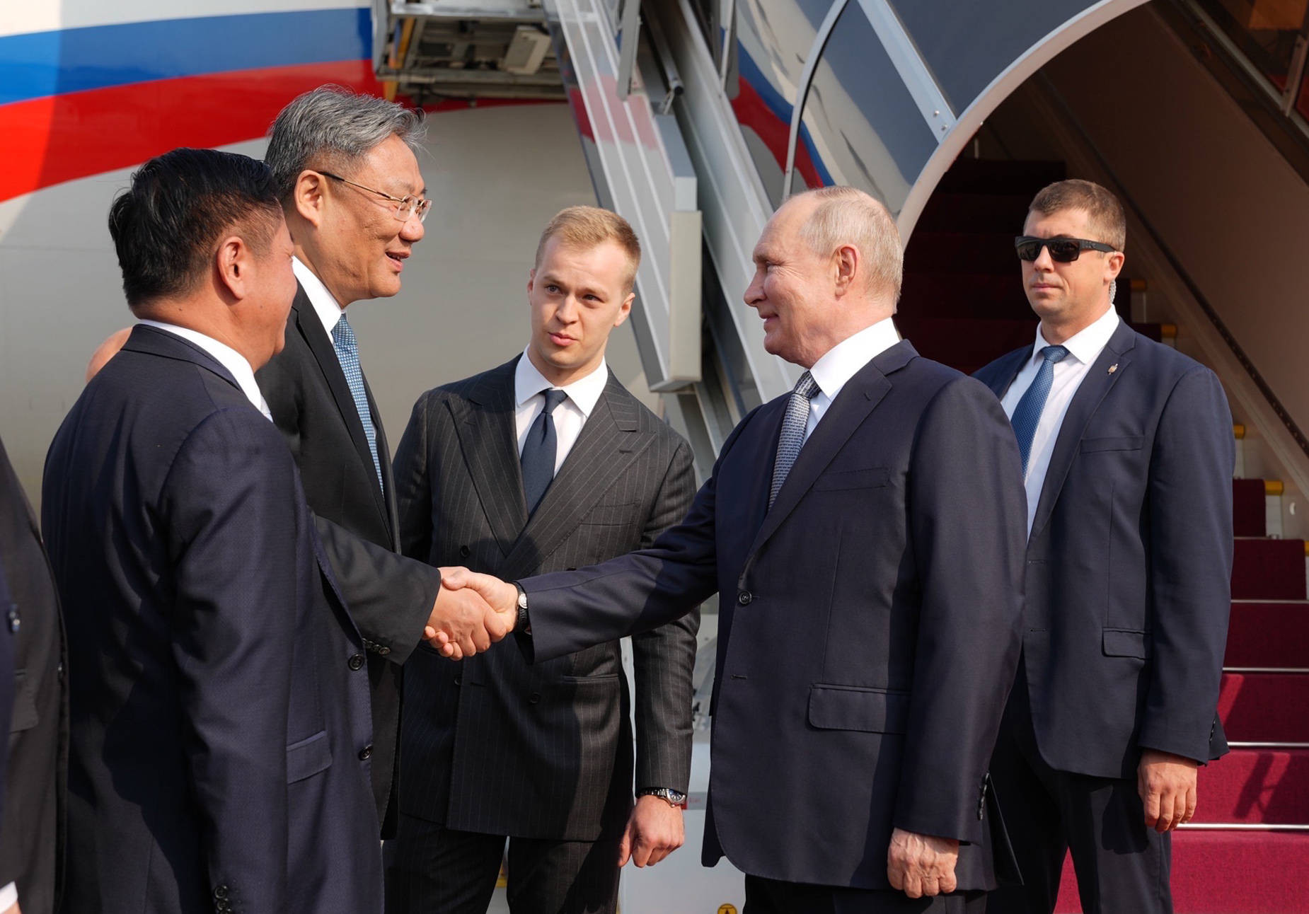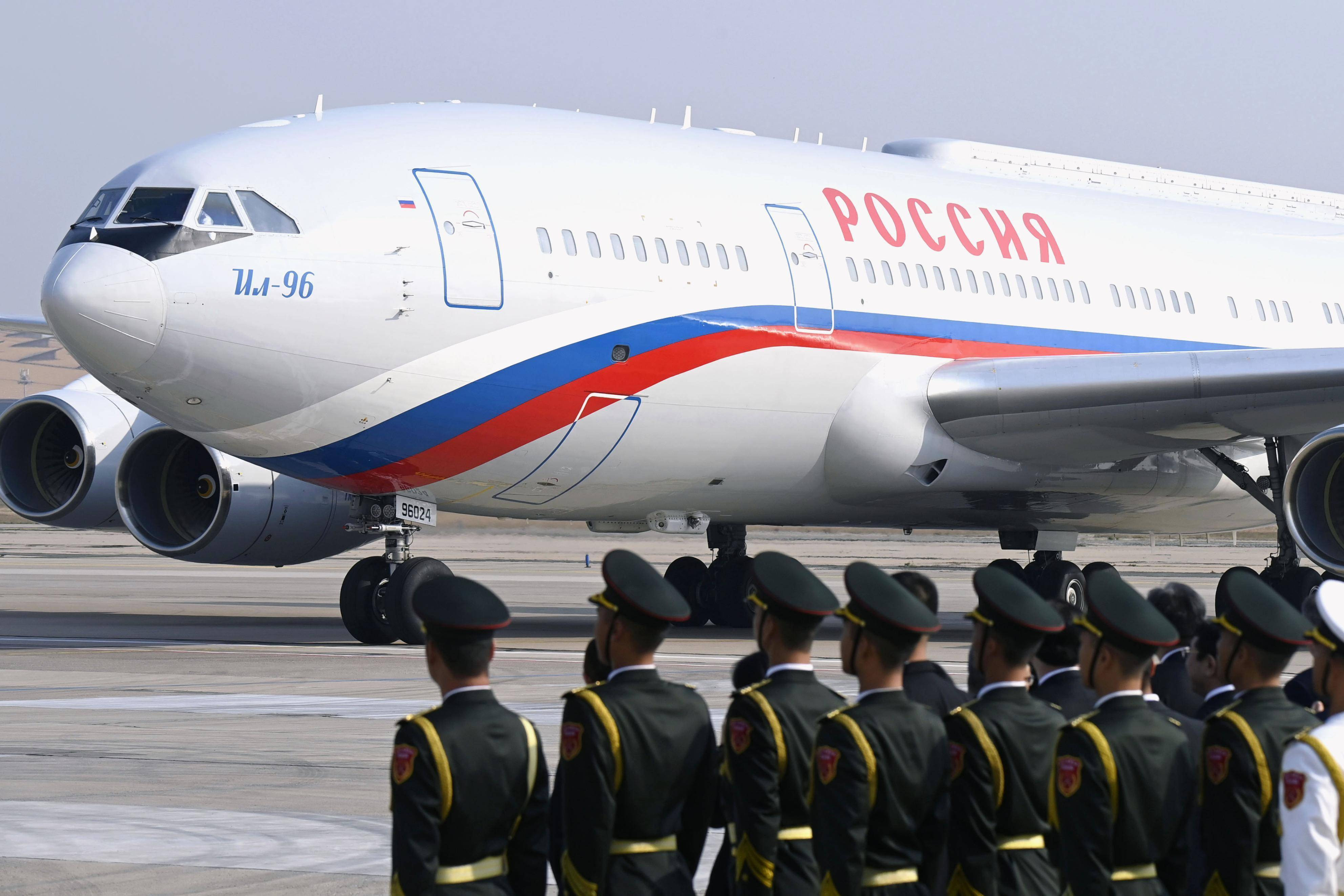În fotografiile oficiale de la sosirea lui Vladimir Putin în capitala Bișkek poate fi văzut un panou antiglonț identic cu cel de la Beijing, plasat pe scara avionului prezidențial rus.