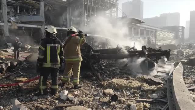 Și capitala Kiev e într-o situație critică. Cel puțin 8 oameni au murit luni, 21 martie, după ce o rachetă a căzut într-un centru comercial înconjurat de blocuri și case.
