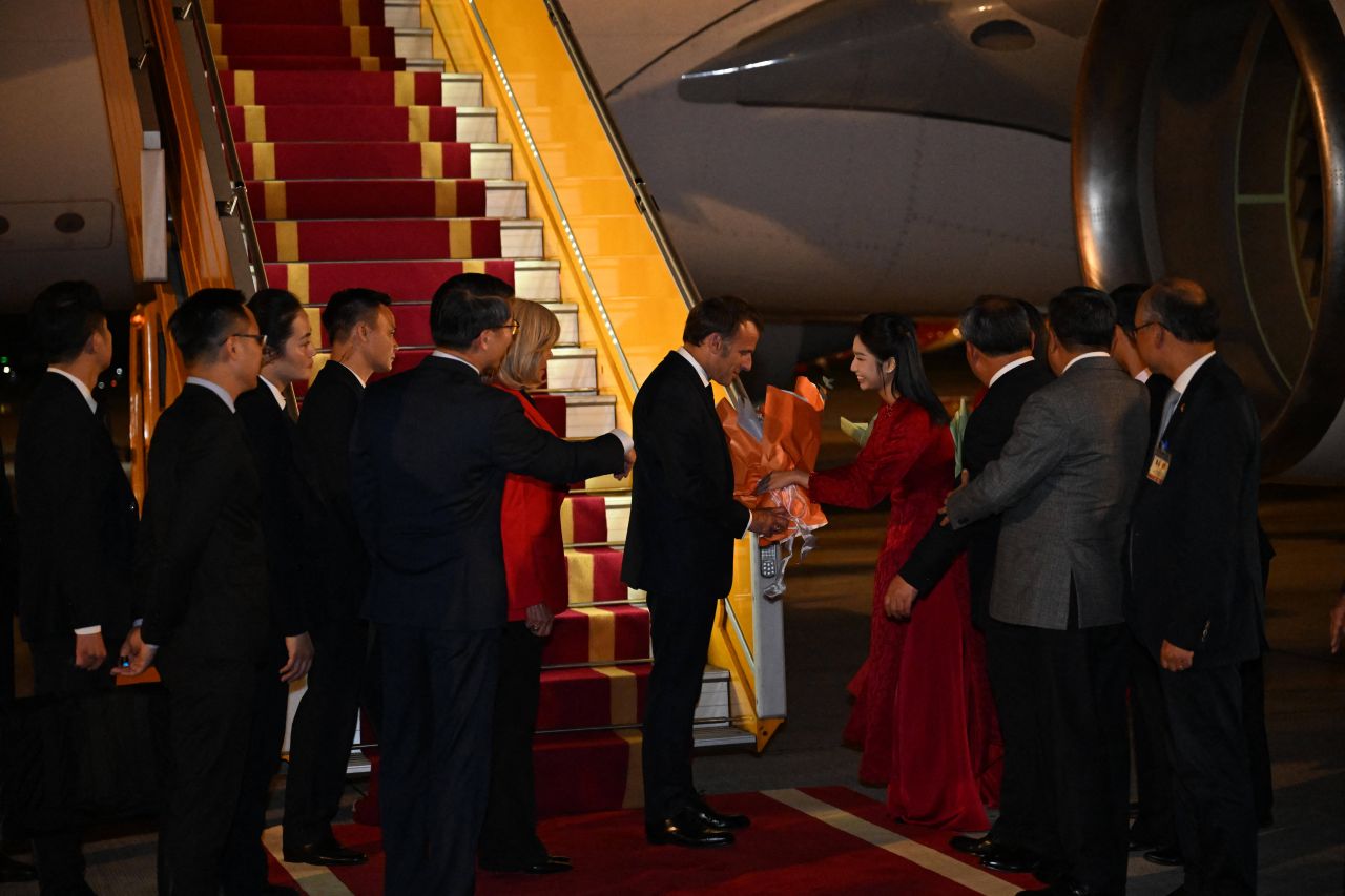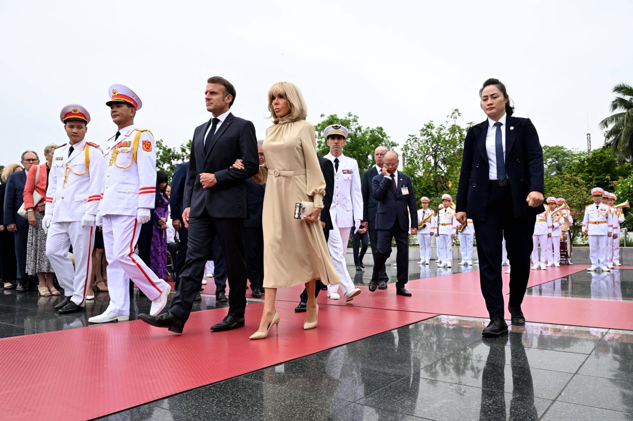 Imaginile filmate duminică seară de agenţia de presă americană Associated Press pe Aeroportul din Hanoi arată deschizându-se uşa avionului prezidenţial, apoi silueta lui Emmanuel Macron apărând în cadru, în timp ce acesta se afla încă în interiorul aparatului de zbor. În acel moment, un braţ al soţiei sale apare în cadru, fără ca Brigitte Macron să poată fi văzută în întregime, iar ea îşi îndreaptă energic o mână spre faţa preşedintelui, într-un gest care poate părea o mică lovitură.