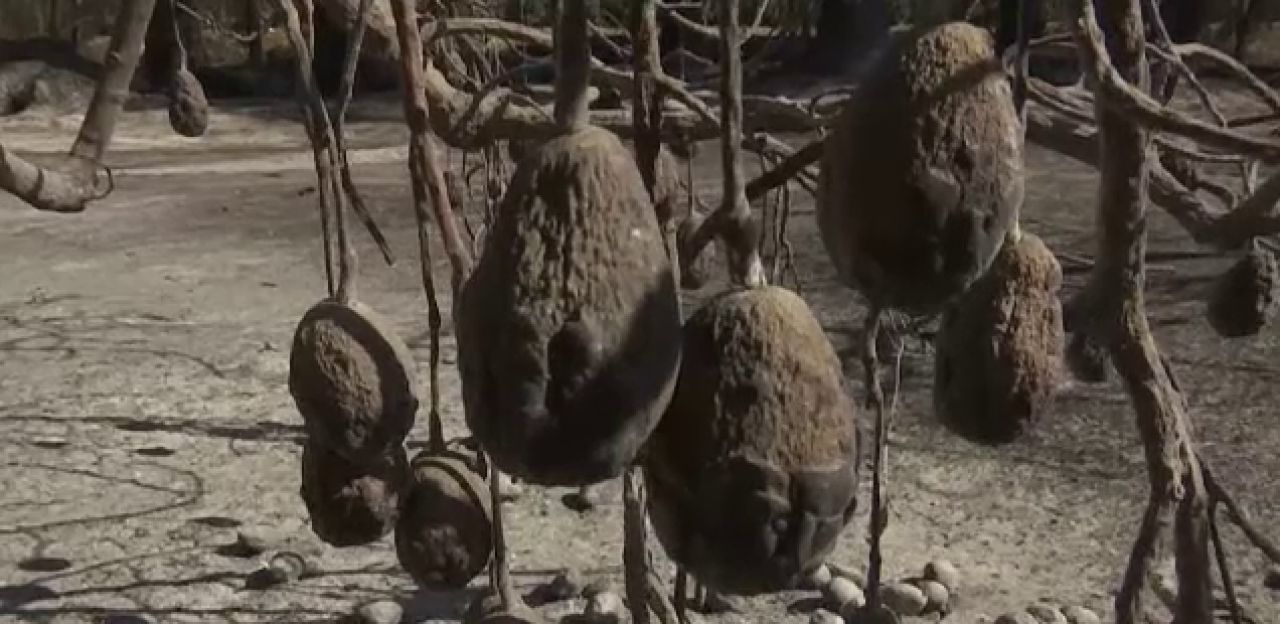 John Grether, fermier de avocado: „Iată un avocado care a fost ars pe exterior şi l-am tăiat pe jumătate astfel încât să vedeţi cum se vede deja partea afectată pe interior, aşa că un astfel de fruct va cădea şi se va strica, va cădea şi nu va putea fi vândut."
