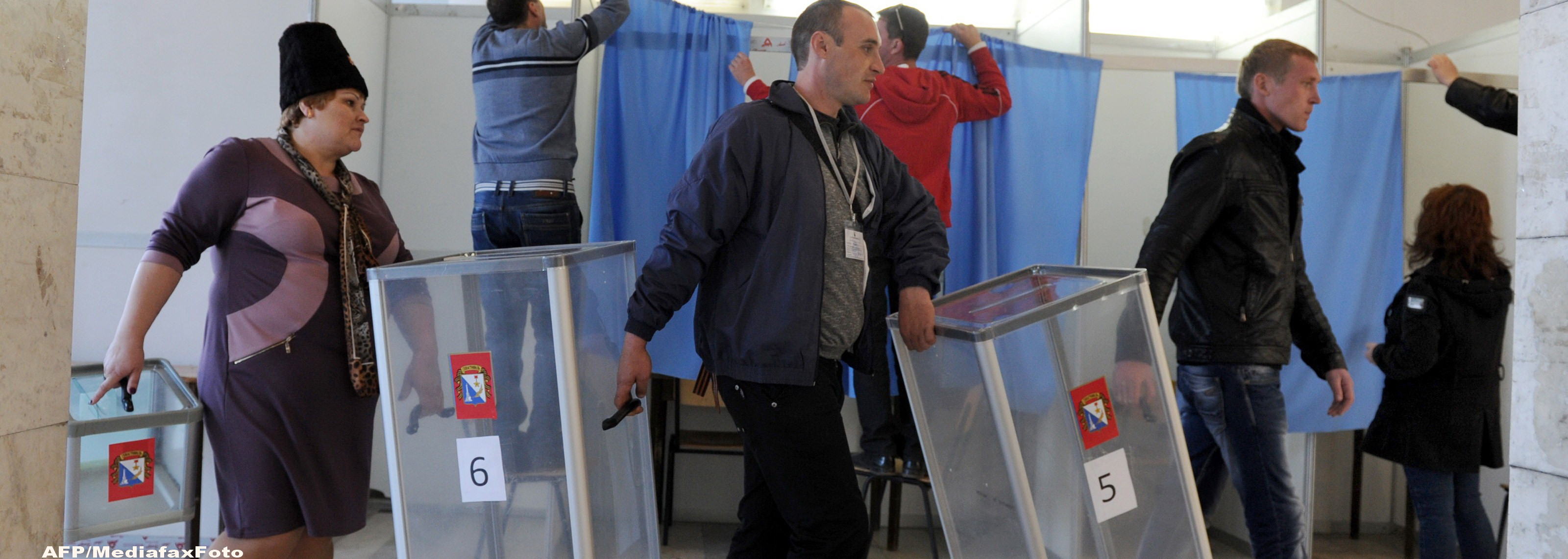 Doar ucraineni de origine rusa votau cu entuziasm, incantati sa scape cat mai repede de pasaportul ucrainean si sperand sa traieasca mai bine cu subventii de la Moscova. In alte sectii de votare de la Sevastopol si Simferopol, capitala peninsulei separatiste, jurnalisti, inclusiv AFP, au fost impiedicati sa patrunda in incinta, in unele cazuri.