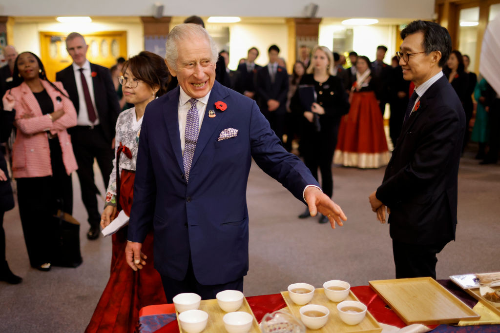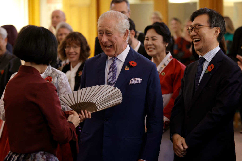 Regele, în vârstă de 74 de ani, a vorbit cu ambasadorul coreean în Marea Britanie, Yeocheol Yoon, și cu membrii grupurilor comunitare, care i-au povestit despre despre cultura și bucătăria coreeană.