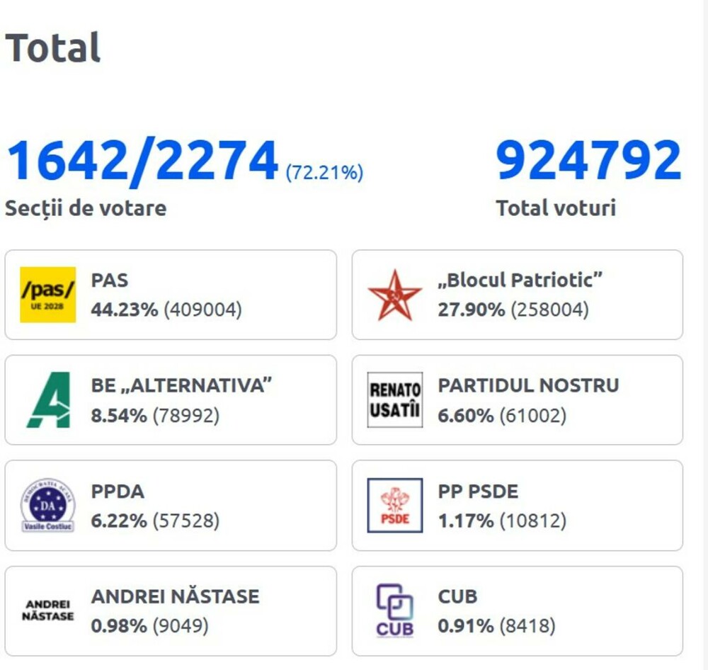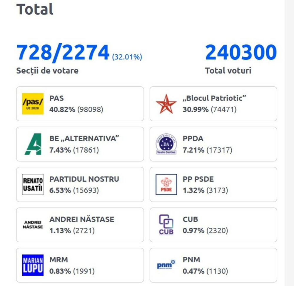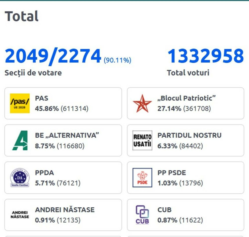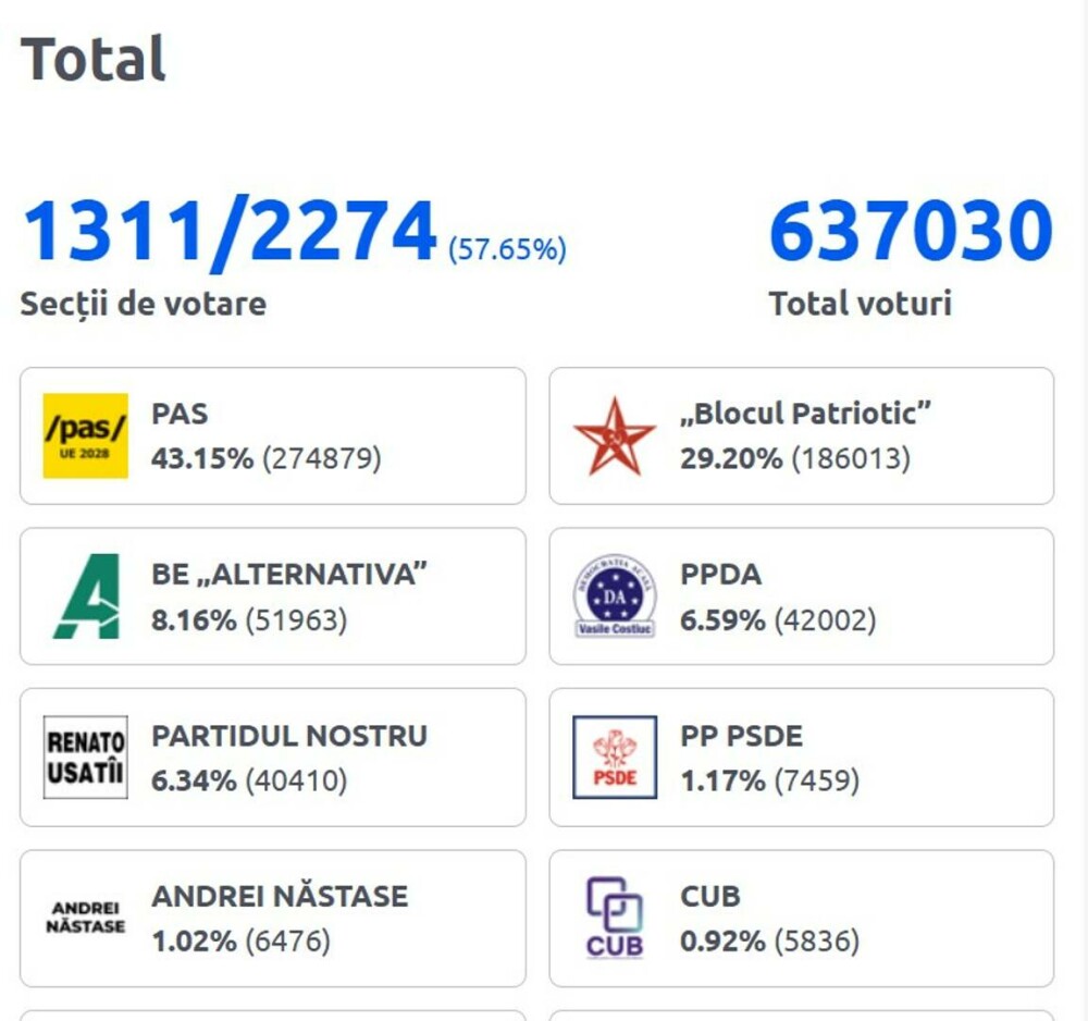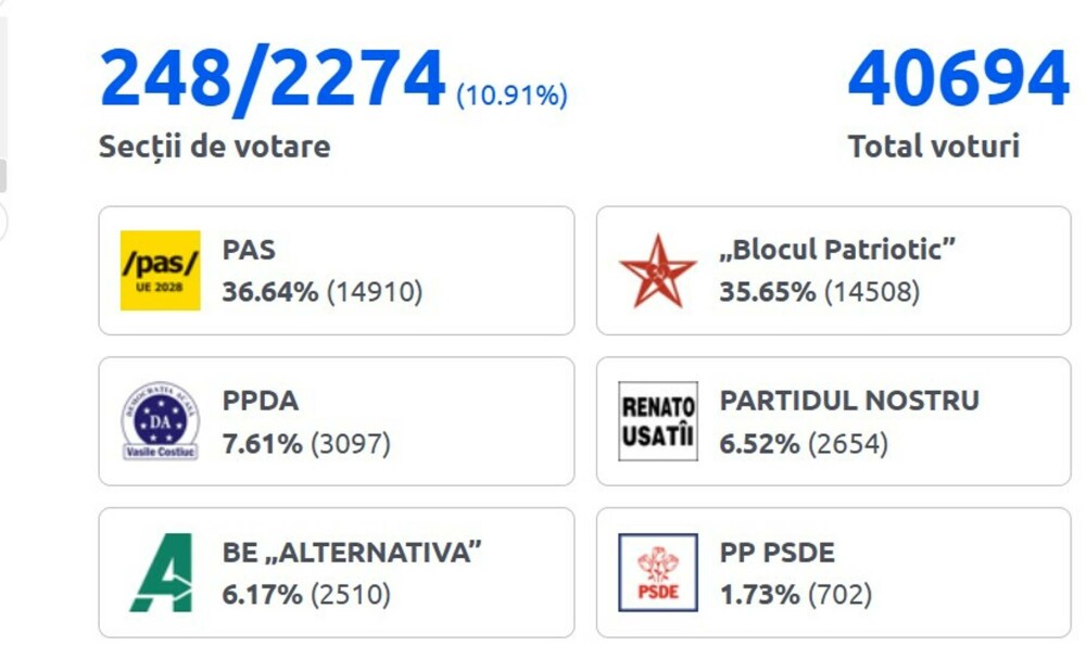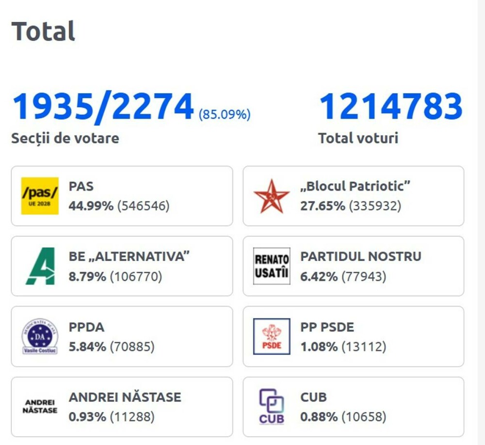 Potrivit informațiilor preliminare, rezultatele obținute de concurenții electorali sunt următoarele: