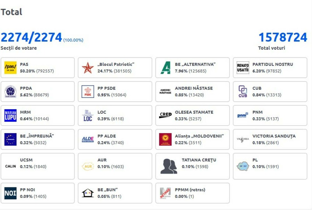 Partidul Politic „Partidul Acțiune și Solidaritate” 50, 16 %