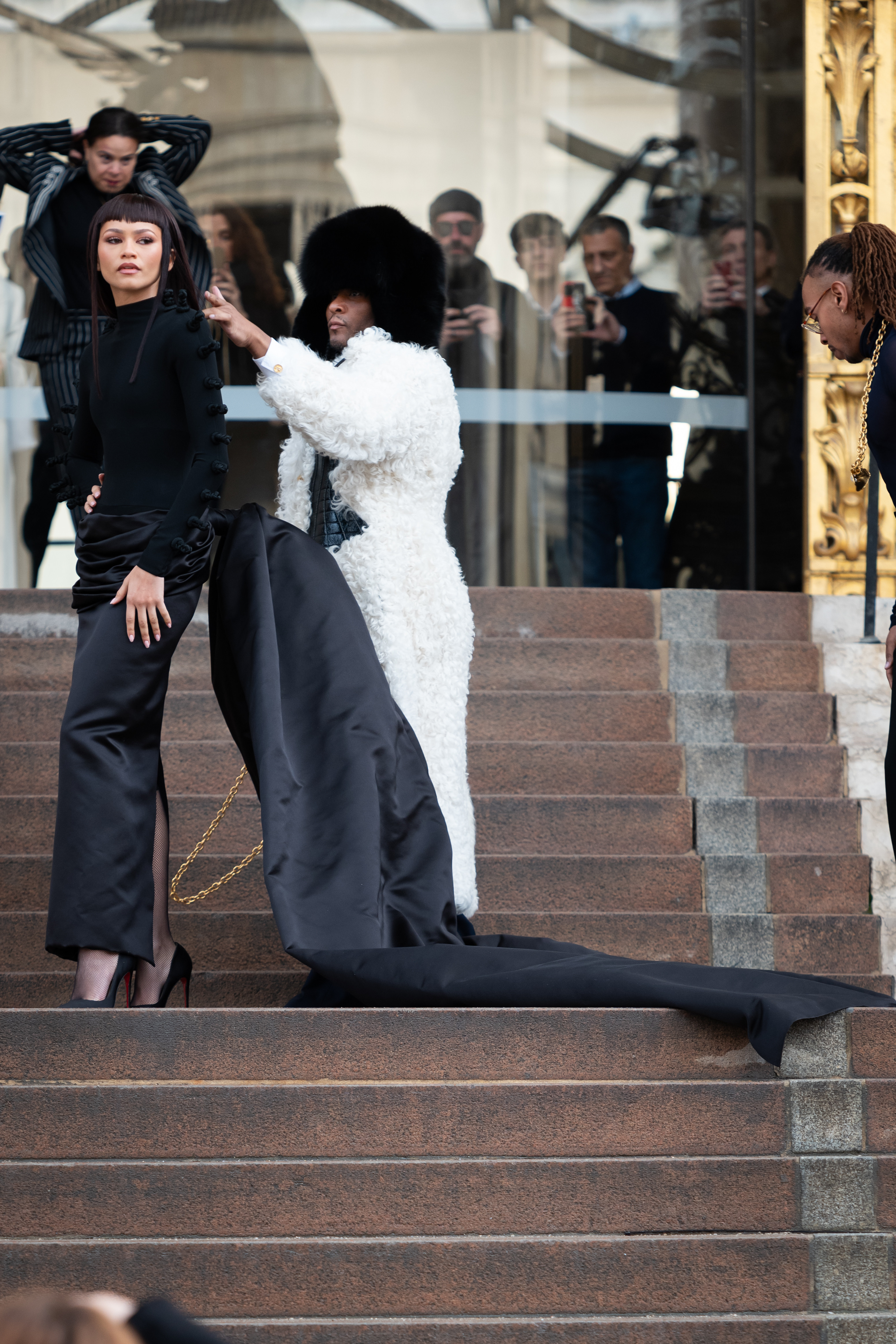 La Schiaparelli, au fost prezente pe scaunele din faţă actriţa Zendaya şi cântăreaţa Jennifer Lopez, dar şi Carla Bruni. Cea mai faimoasă femeie cu tunsoare bob din lumea modei, Anna Wintour, redactor-şef al revistei Vogue, a urmărit spectacolul ameţitor din spatele ochelarilor de soare cu logo ascuns pentru a nu jigni pe nimeni.