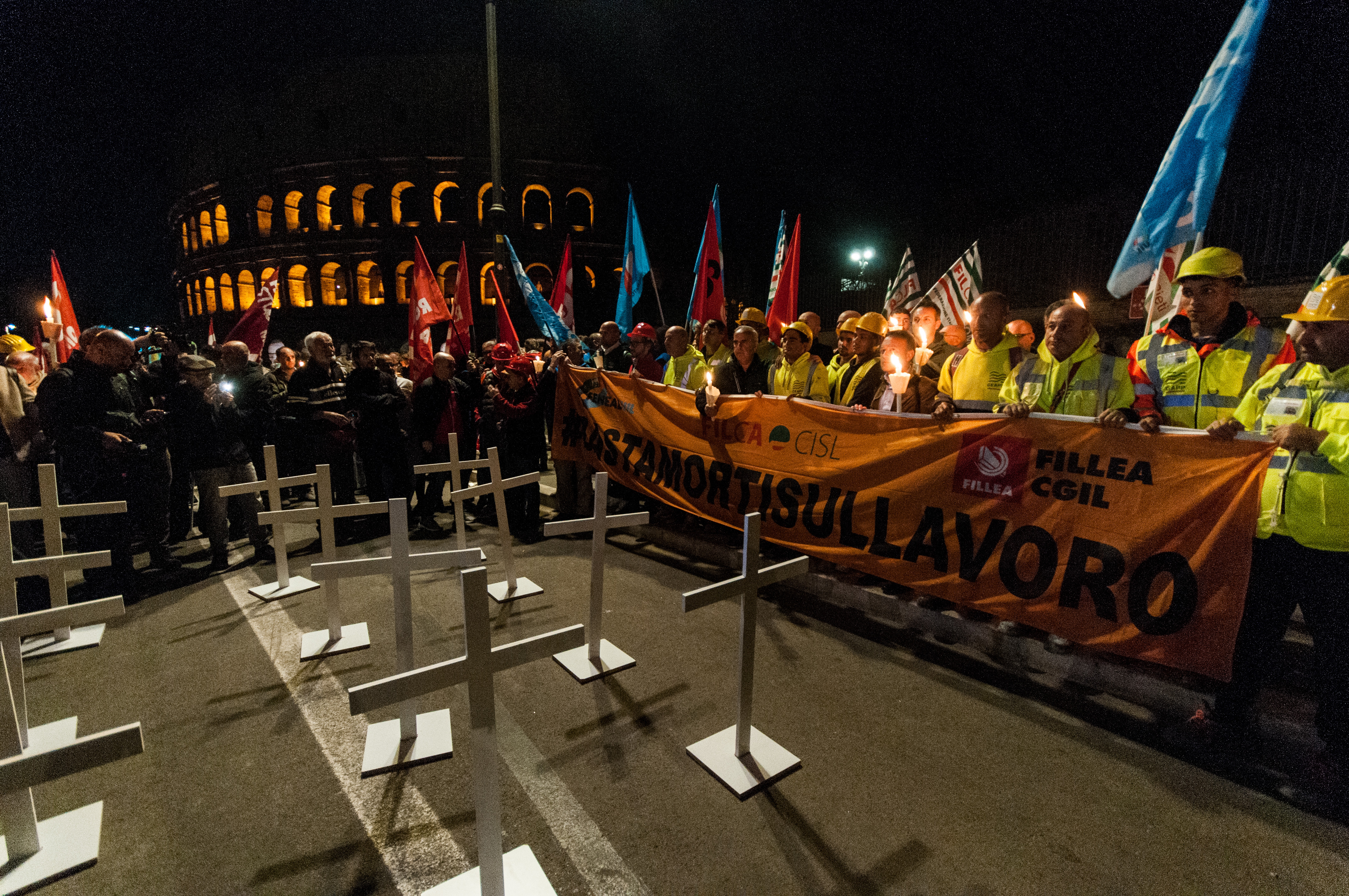 O mare mulțime s-a adunat marți seară la Forurile Imperiale, lângă Colosseum, pentru un priveghi cu torțe în memoria lui Octavian Stroici, muncitorul român care și-a pierdut viața în urma prăbușirii de la Torre dei Conti, în centrul Romei.