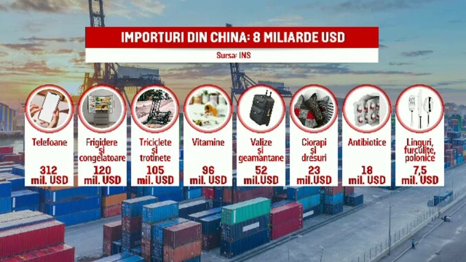 Potrivit Institutului Național de Statistică sunt aproape zece mii de tipuri de produse pe care le aducem de acolo, de la telefoane și calculatoare, până la trotinete, valize și ciorapi. După ce au invadat multe țări din vestul Europei, mașinile chinezești ar putea defila în număr mare și pe șoselele noastre.