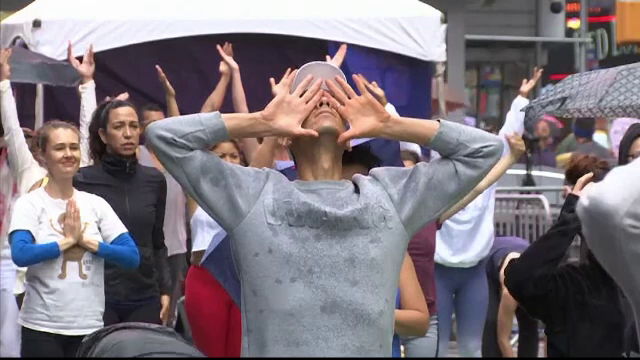 Cea mai lungă zi a anului a fost marcată într-un mod inedit şi la New York. Agitaţia din Times Square a fost înlocuită de pace şi linişte. Asta pentru că centrul metropolei americane a fost acaparat de mai mulţi practicanţi de yoga care au vrut să îşi exerseze mişcările preferate cât mai mult timp în aer liber, chiar dacă la un moment dat a plouat cu găleata.