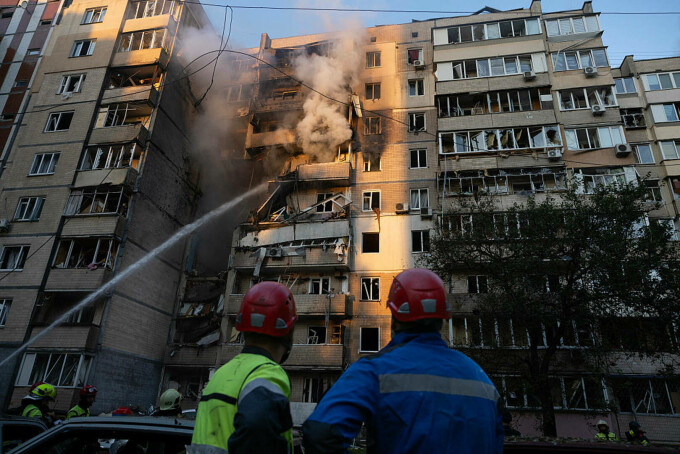 Şefa guvernului de la Kiev, Iulia Sviridenko, a arătat însă că pentru prima dată a fost lovit sediul executivului, unde s-a declanşat un incendiu.
